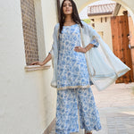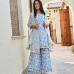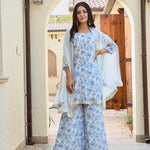 BLUE ARAVALI ORGNAZA CAPE, KURTA WITH PANTS SET OF THREE