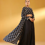 BLACK NAAZ CROP TOP, FLAIR PANTS & JACKET SET OF THREE