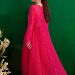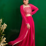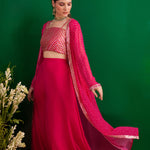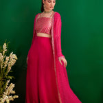 FUSCHIA BANDHANI NAAZ JACKET WITH GOTA CROP TOP AND PALLAZO SET