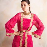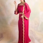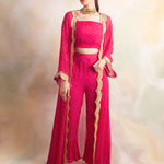 FUSCHIA NAAZ JACKET WITH CROP TOP AND PANTS SET