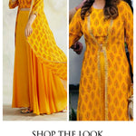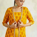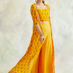 RAVEENA TANDON | MUSTARD NAAZ CAPE WITH CROP TOP AND PANT SET OF THREE