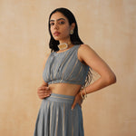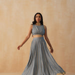 GREY DISHA CROP TOP, LEHNEGA & ODHANI SET OF THREE