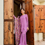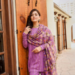 PURPLE JAIPUR KURTA WITH GARARA AND PURE CHANDERI ODHANI SET OF THREE