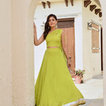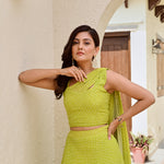 LIME GREEN DISHA BANDHANI CROP TOP & LEHENGA SET OF TWO