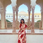 SAKSHI MEHRA I BEIGE & RED FLORAL MASHA KAFTAN