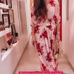 This vivid printed Kaftan Dress is a sure shot head turner this festive season. Style it with polki jewelry and mojaris for a Mehndi celebration. Or wear it with statement gold hoops and gladiators for a beach soiree. A must have piece in your wardrobe. It come with a soft cotton slip.