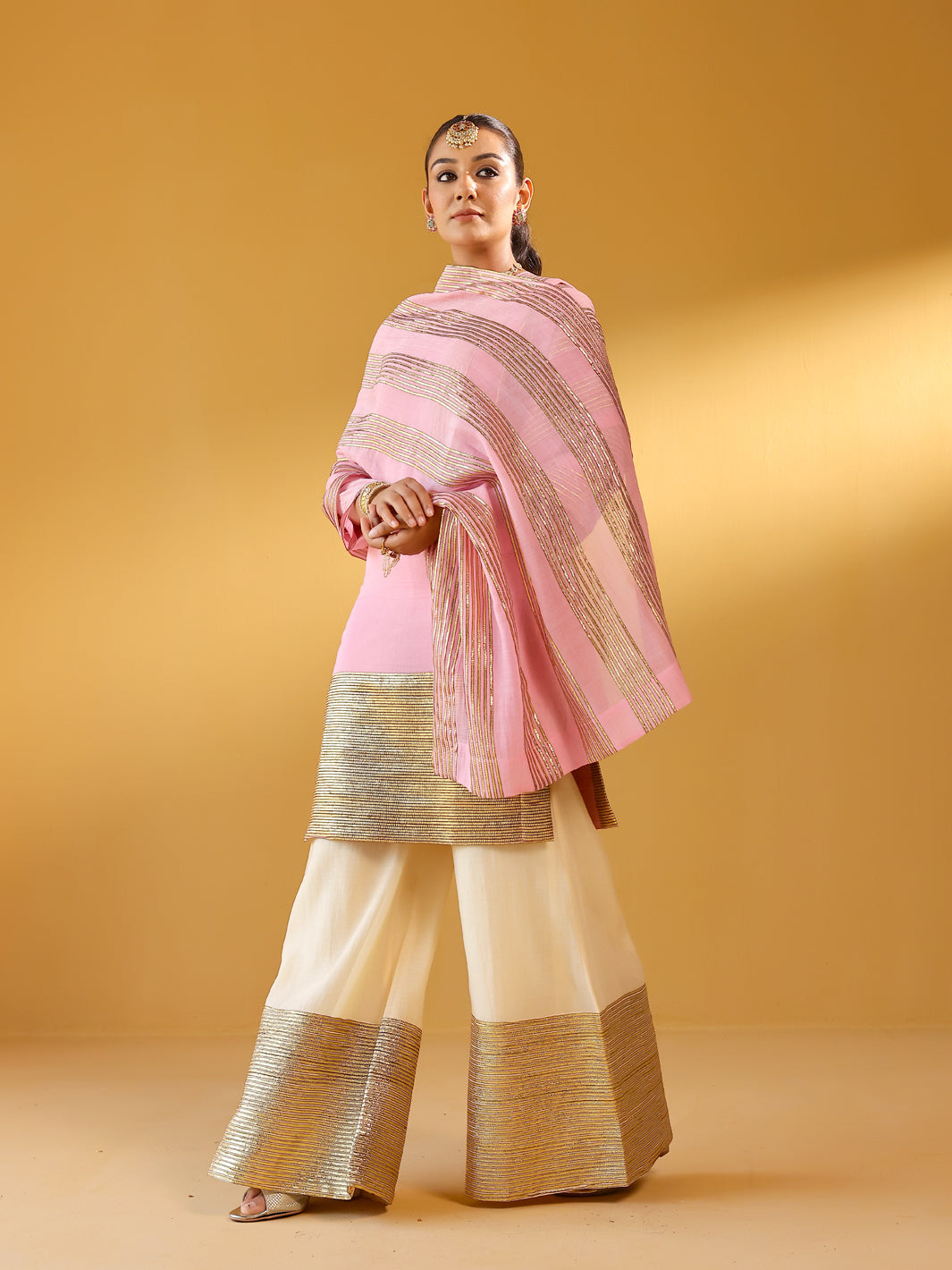 DIVYA KAPOOR |BLUSH PINK ADIVA CHANDHERI KURTA, SHARARA & ODHANI I SET OF THREE