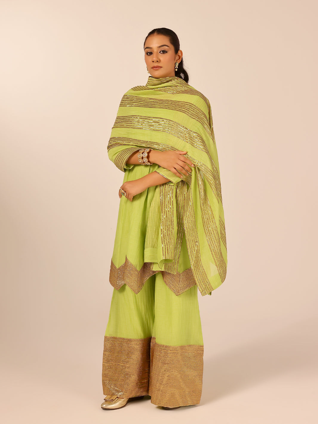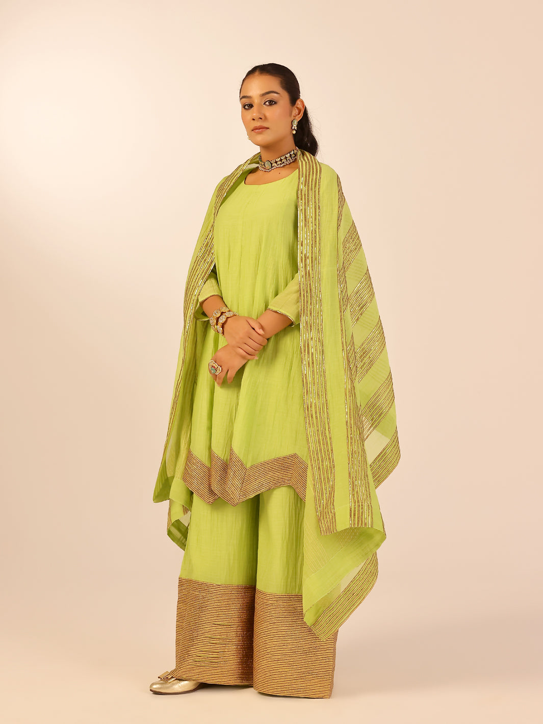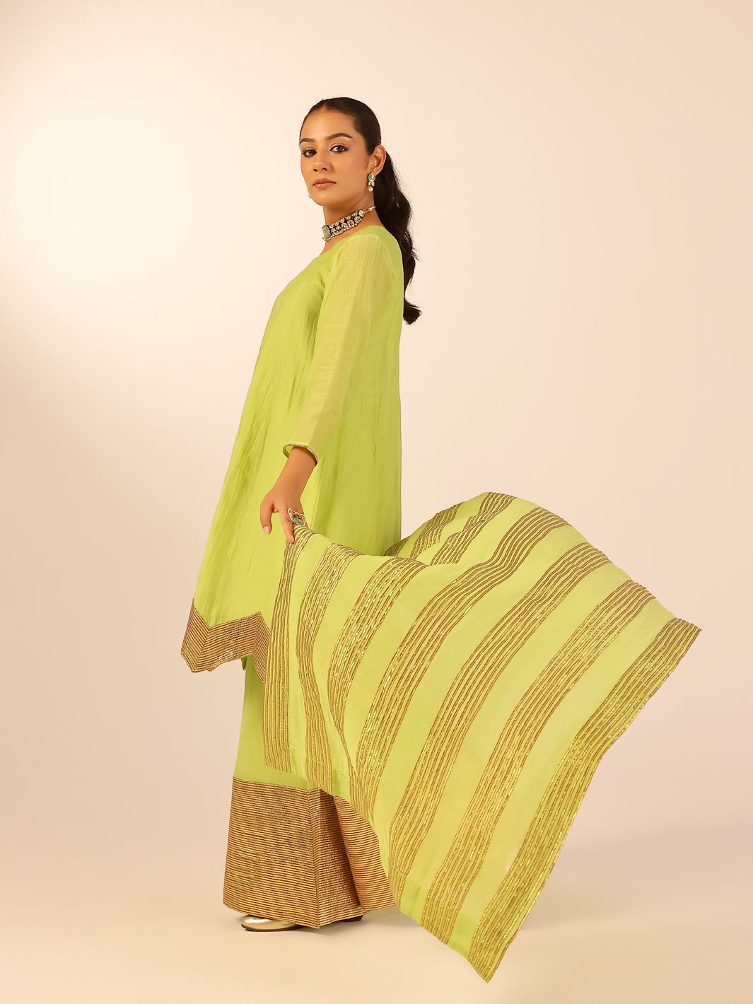AVNI GREEN KURTA, TROUSERS & ODHANI I SET OF THREE