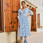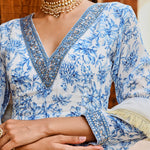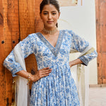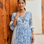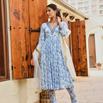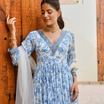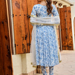 BLUE ADAH ANARKALI, CHURIDAR AND ODHANI SET OF THREE