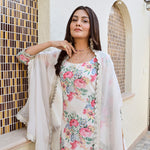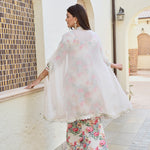 IVORY ARAVALI ORGANZA CAPE, KURTA WITH PANTS SET OF THREE