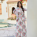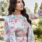 Make heads turn in this bold and structured statement making piece. Soft pure crepe blazer , crop top and flair pants with intricate silver coin detailing. This outfit is the epitome of style, glamour & comfort.S tyle this outfit with statement earrings .