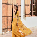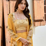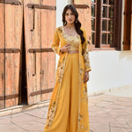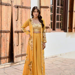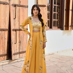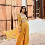 MUSTARD NAAZ CAPE, CROP TOP AND FLAIR PANTS SET OF 3