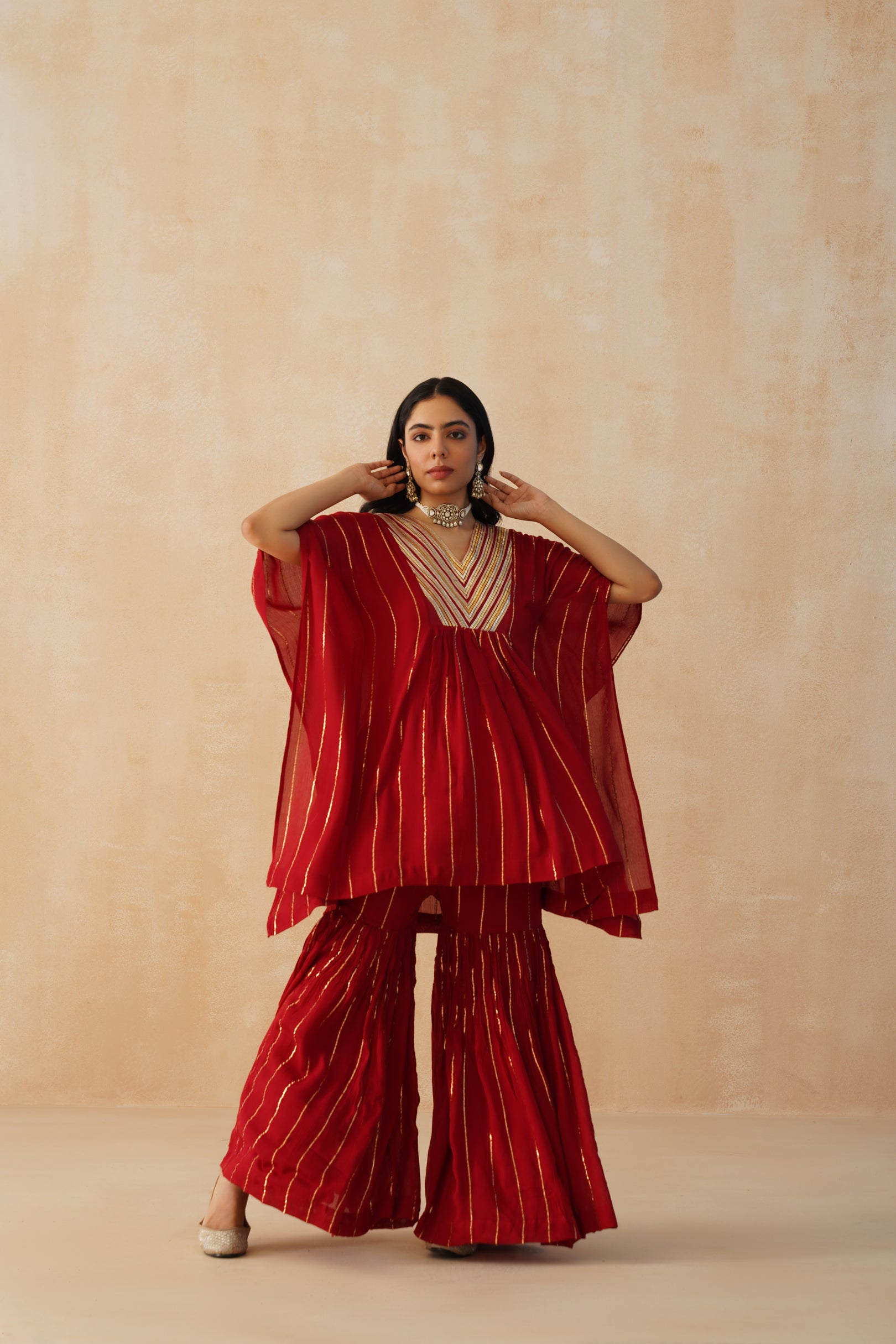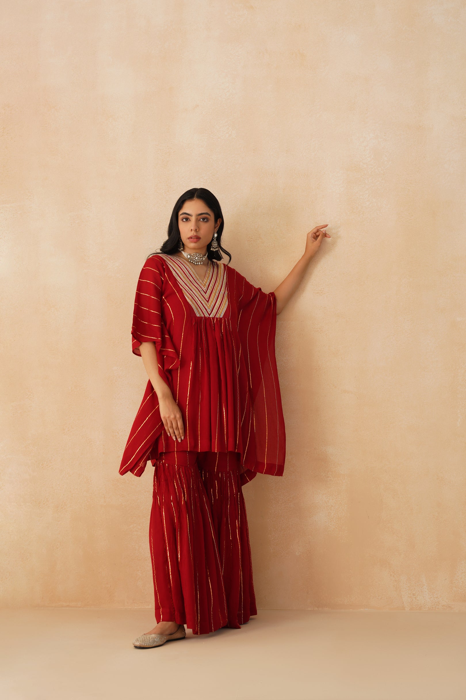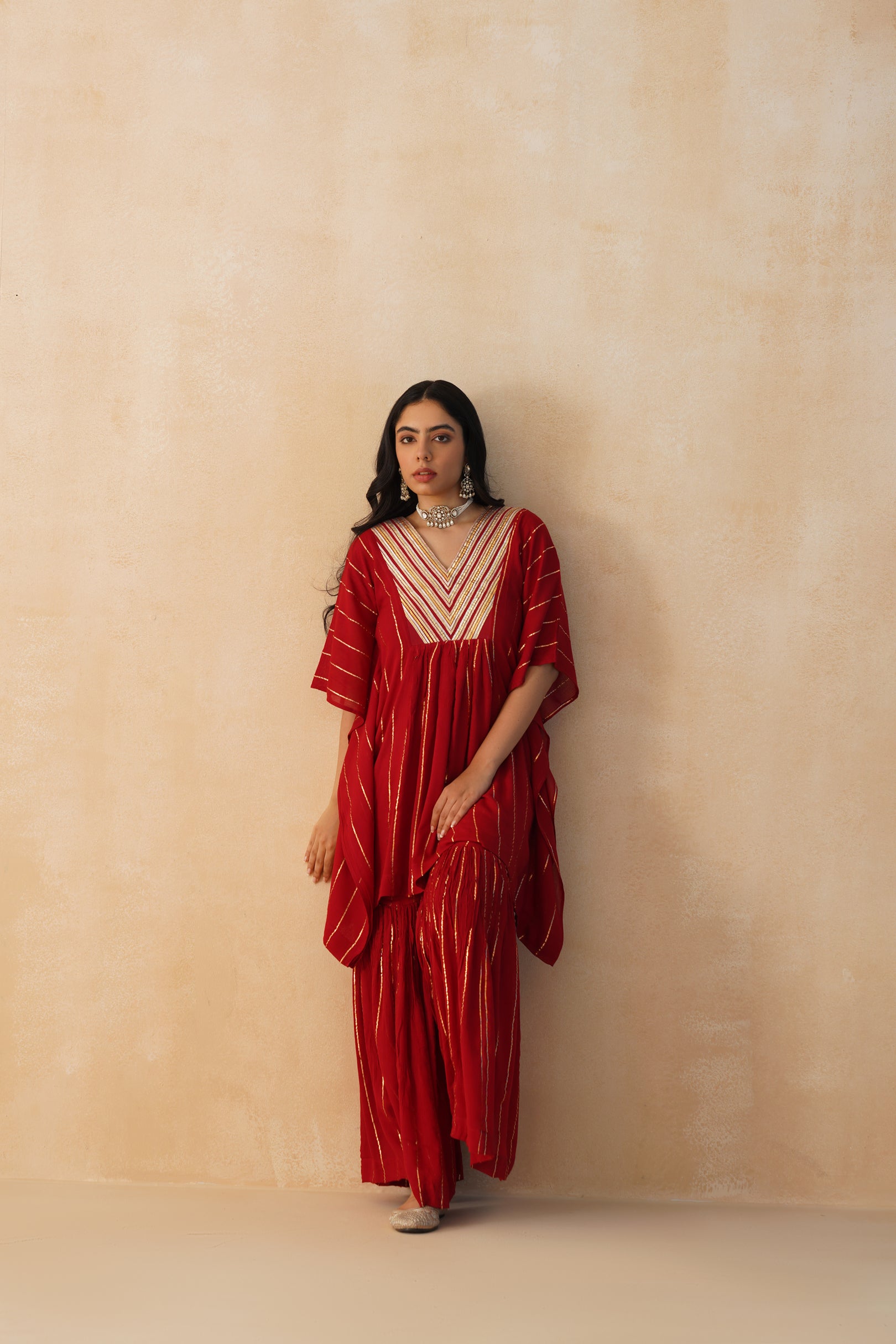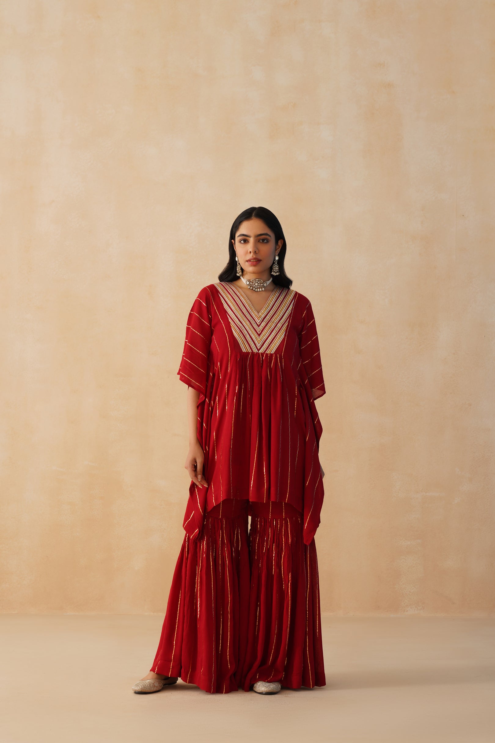 RED MIRA KAFTAN & SHARARA PANTS SET OF TWO