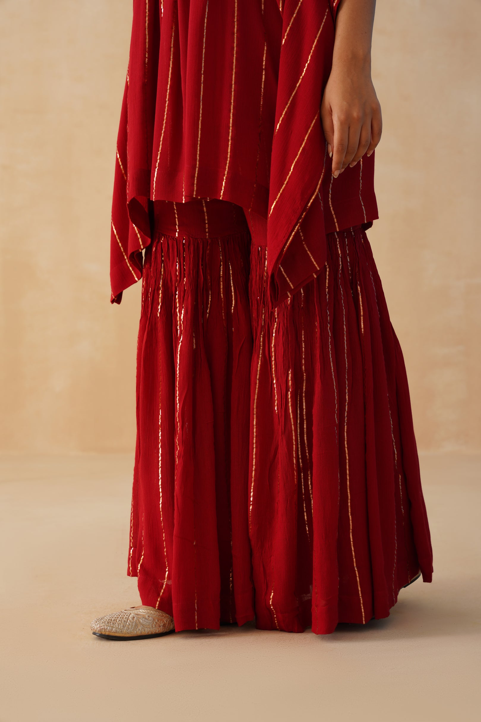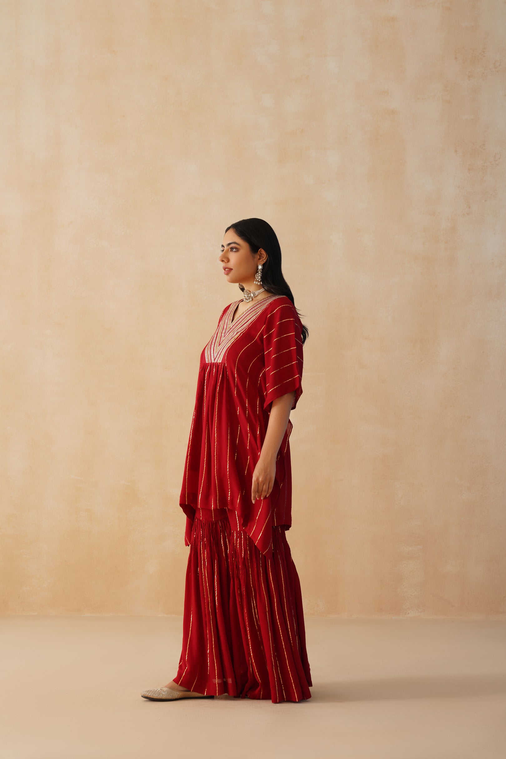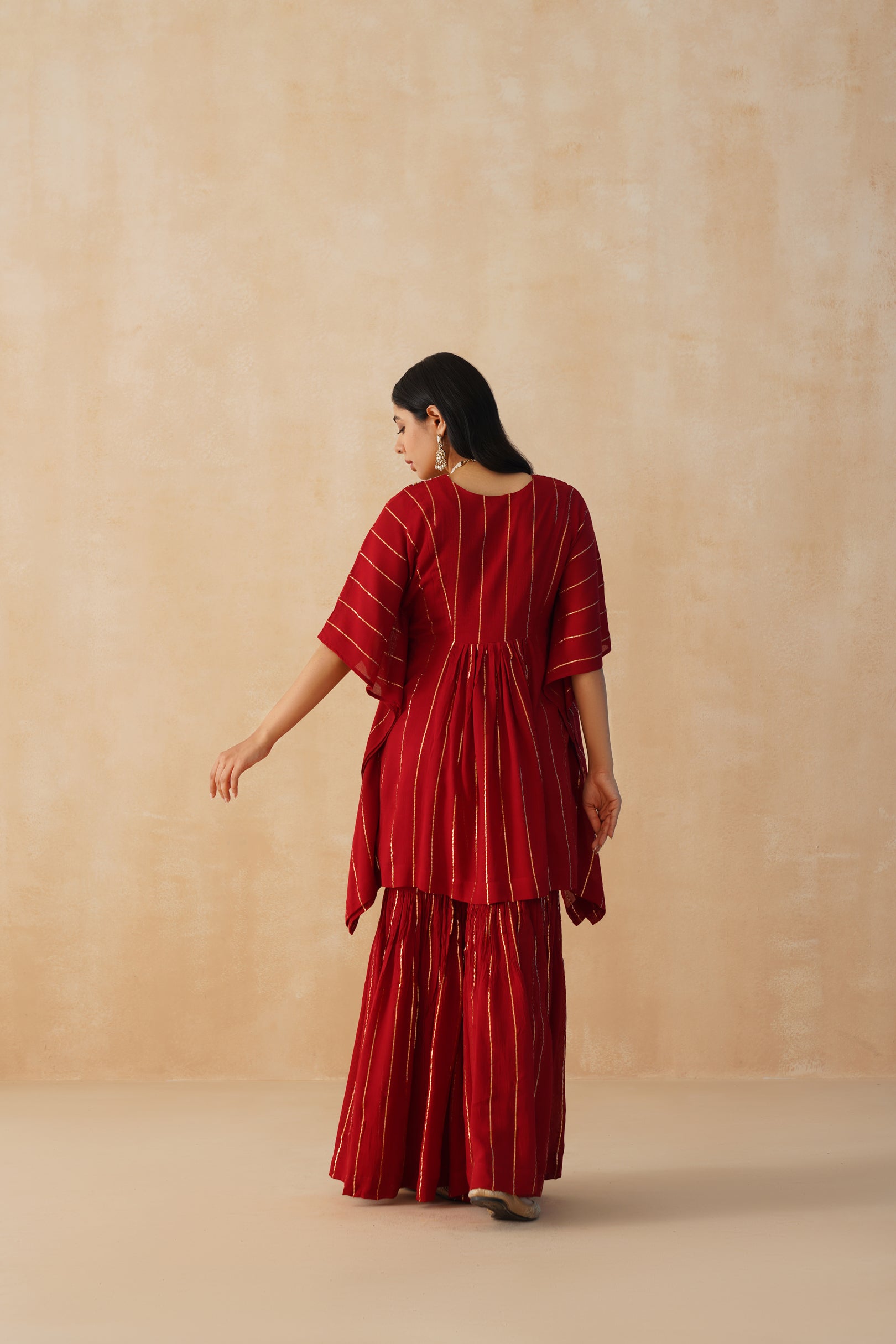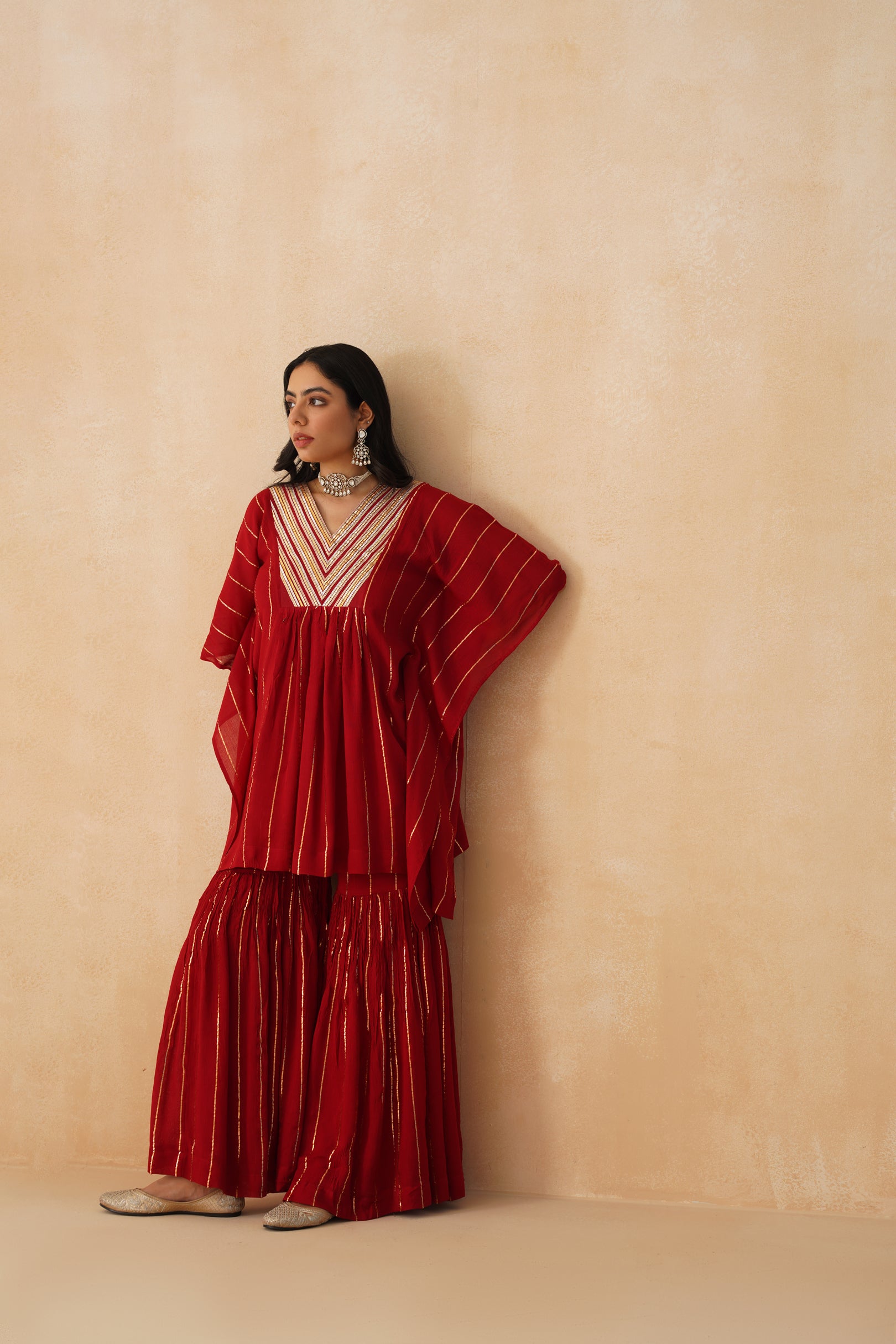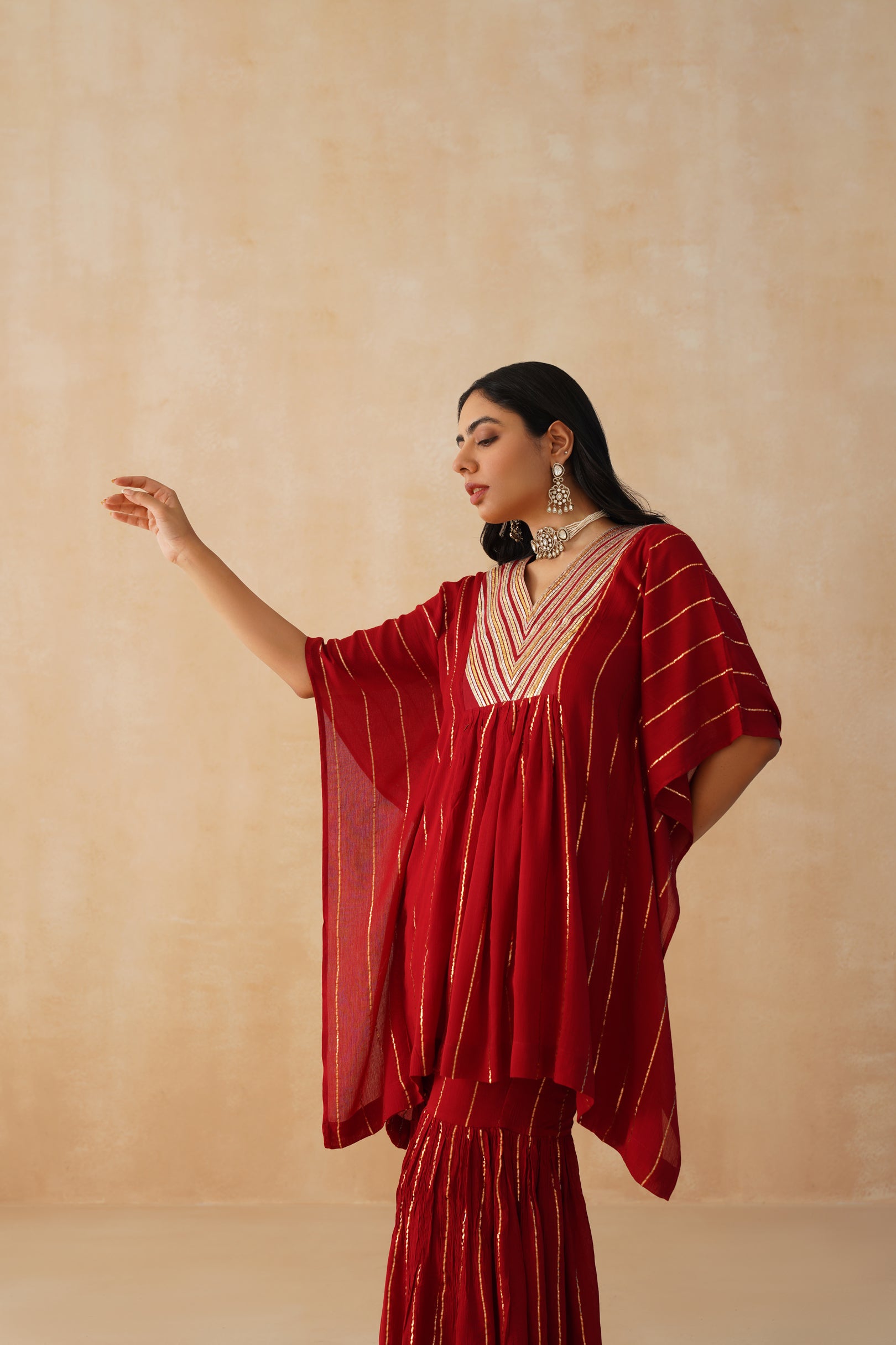 RED MIRA KAFTAN & SHARARA PANTS SET OF TWO