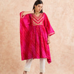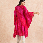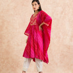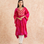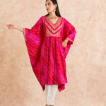Here comes our signature Bandhani print in the most versatile Kaftan silhouette. complete with intricate gotta work; this soft cotton mul kaftan is as comfortable as its stylish. It come with ivory cotton trousers.