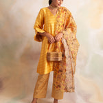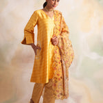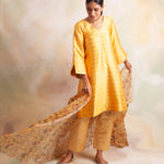 MUSTARD GAURI KURTA WITH PANTS AND ODHANI SET OF THREE