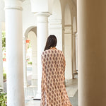 Pure printed crepe kaftan top with matching pants and an exquisite gota belt makes this piece a must have this festive season. Style it with mojaris for a mehndi celebration or sleek heels for an evening soiree.