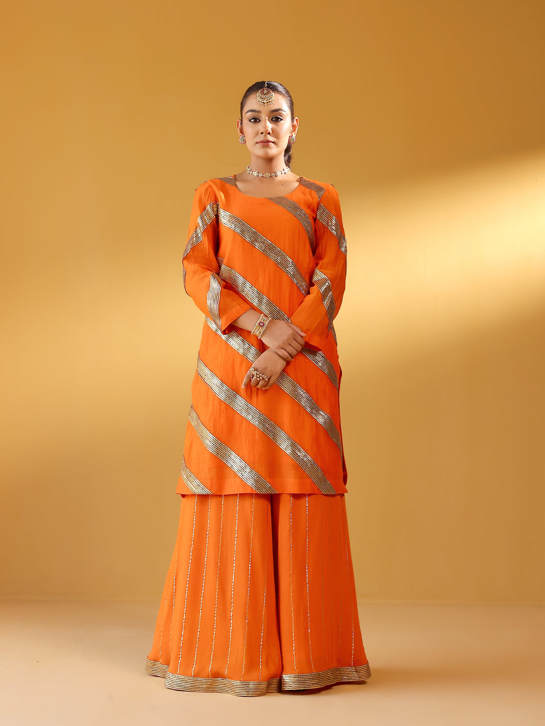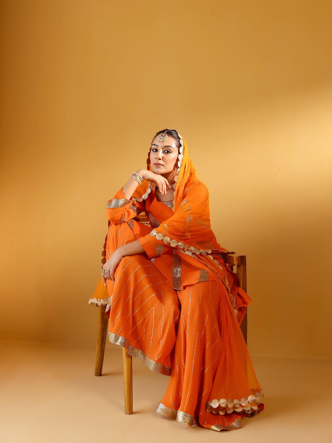 YAMINI ORANGE KURTA, SHARARA & ODHANI I SET OF THREE