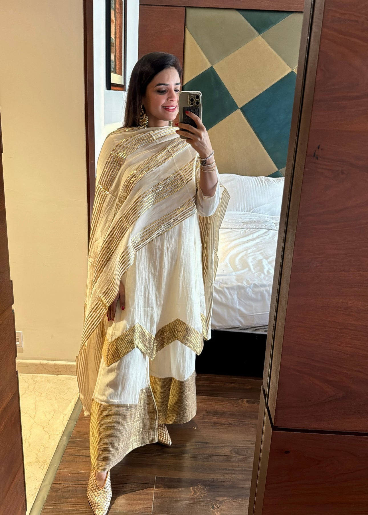 ADIVA RANI PINK CHANDHERI KURTA, SHARARA & ODHANI SET OF THREE