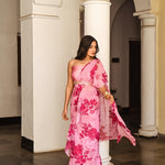 PINK ADYA DRAPED RUFFLE SAREE WITH CROP TOP AND BELT