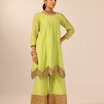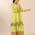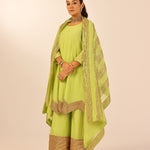 AVNI GREEN KURTA, TROUSERS & ODHANI I SET OF THREE
