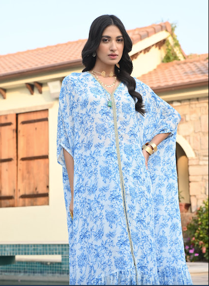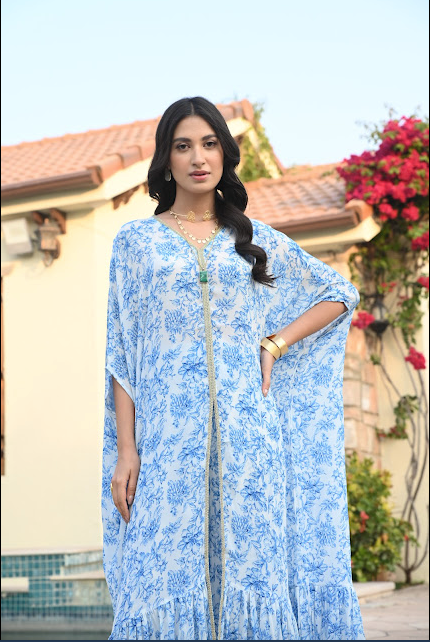 BLUE ZEENAT KAFTAN TOP, PANTS & BELT SET OF THREE