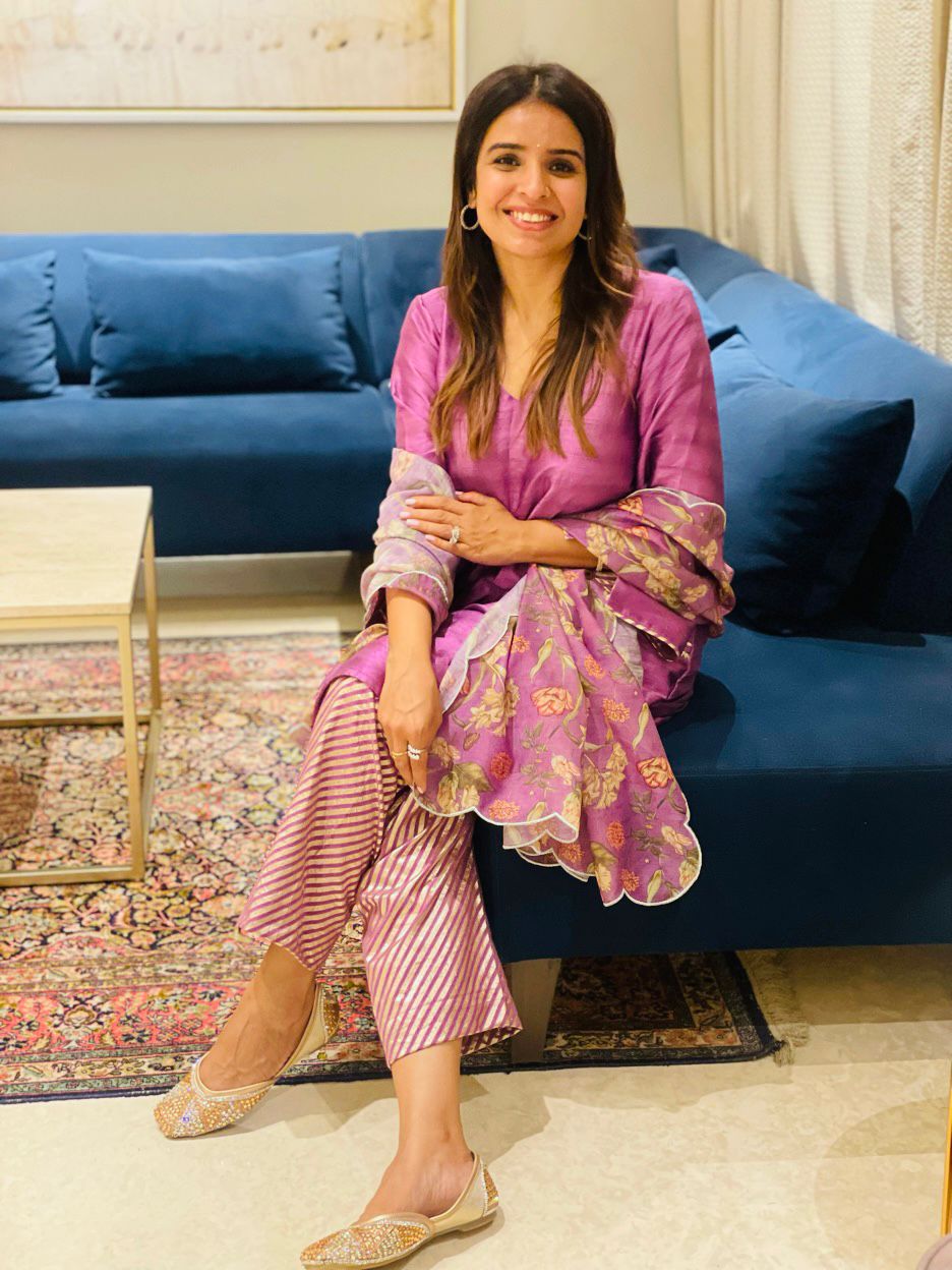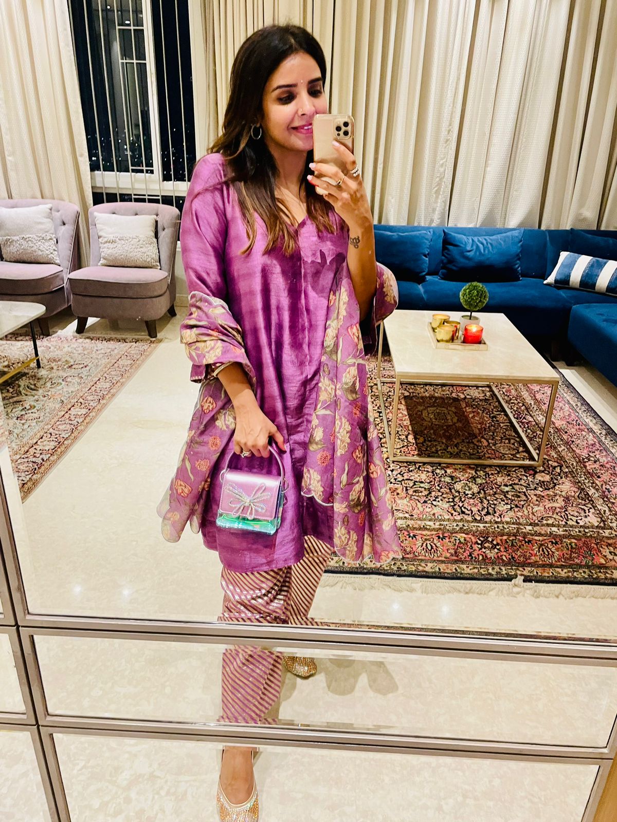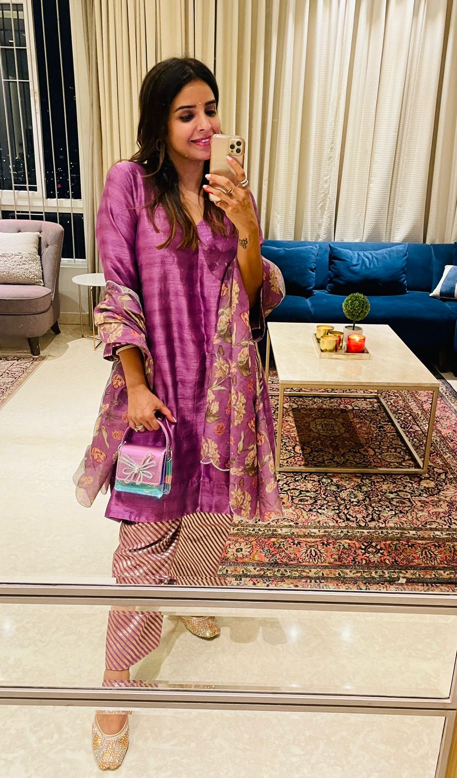 TWINKLE KHANNA | PURPLE GAURI KURTA WITH PANTS AND ODHANI SET