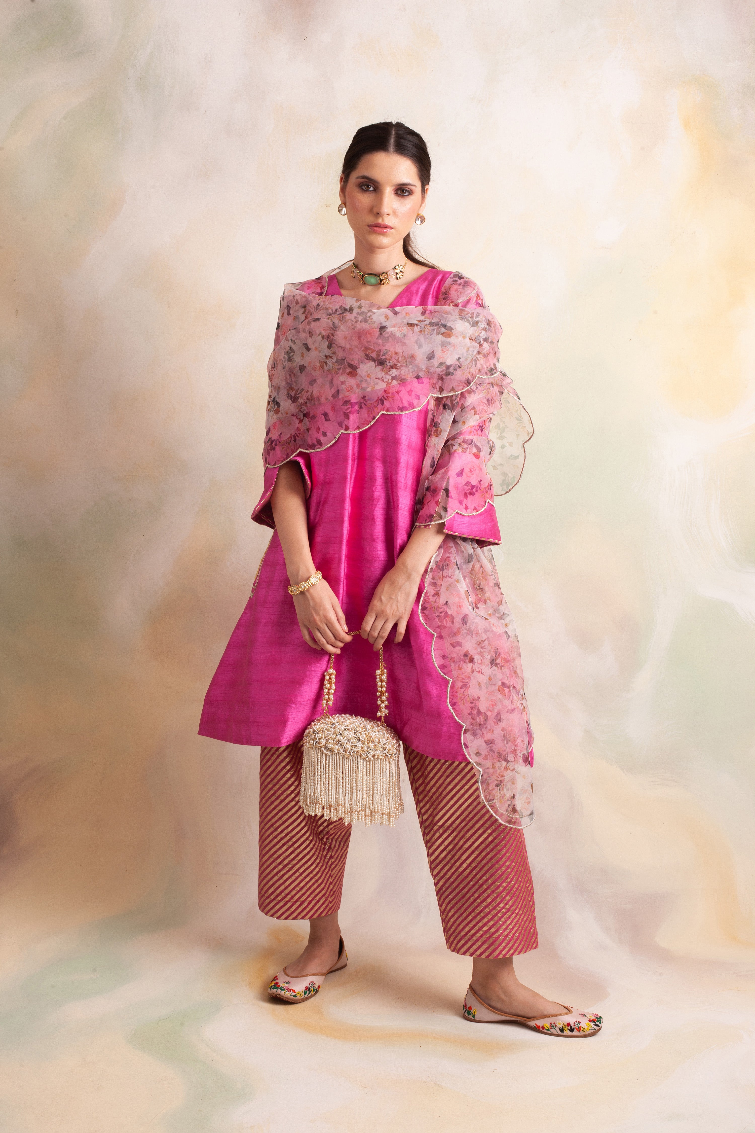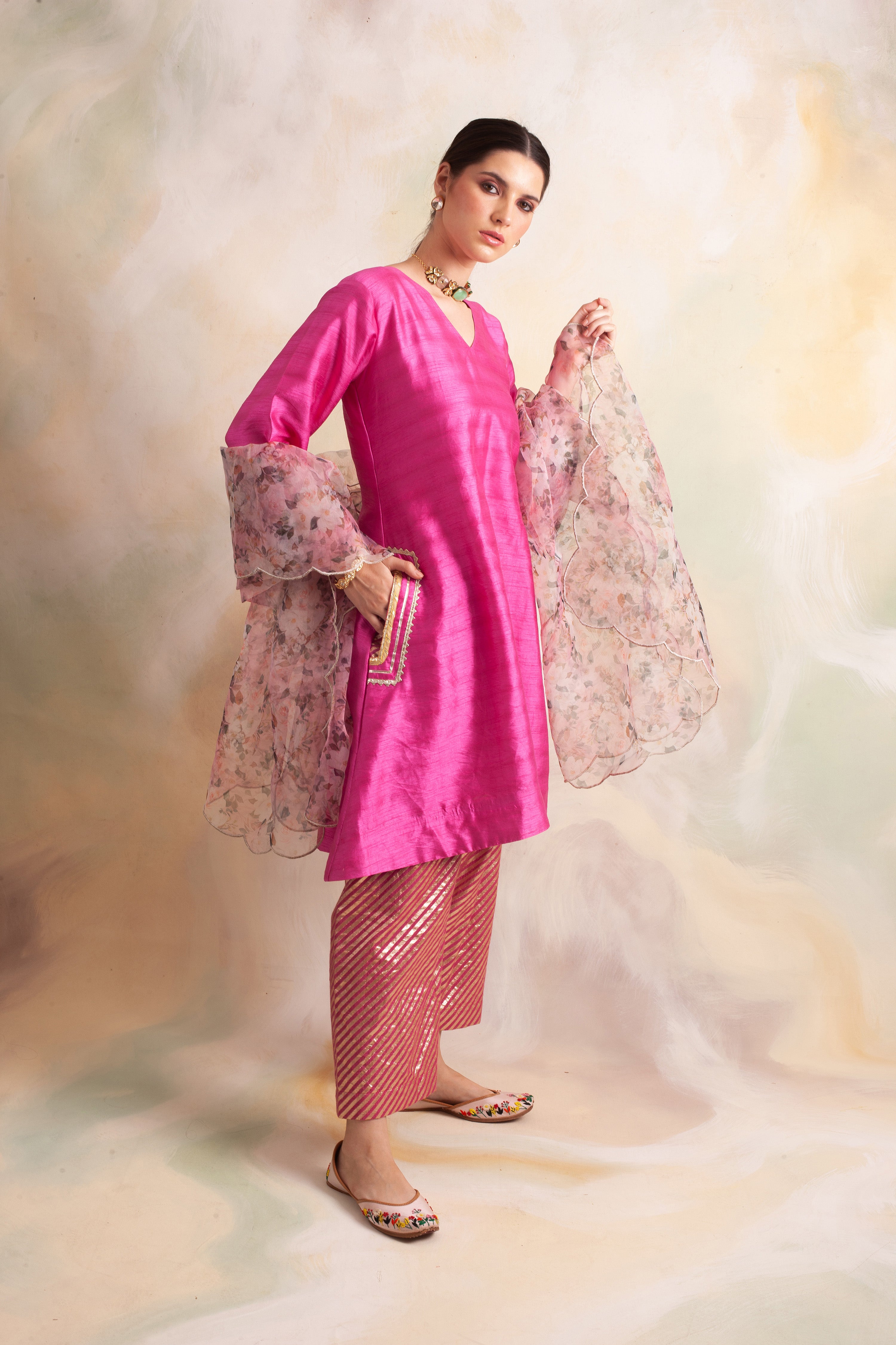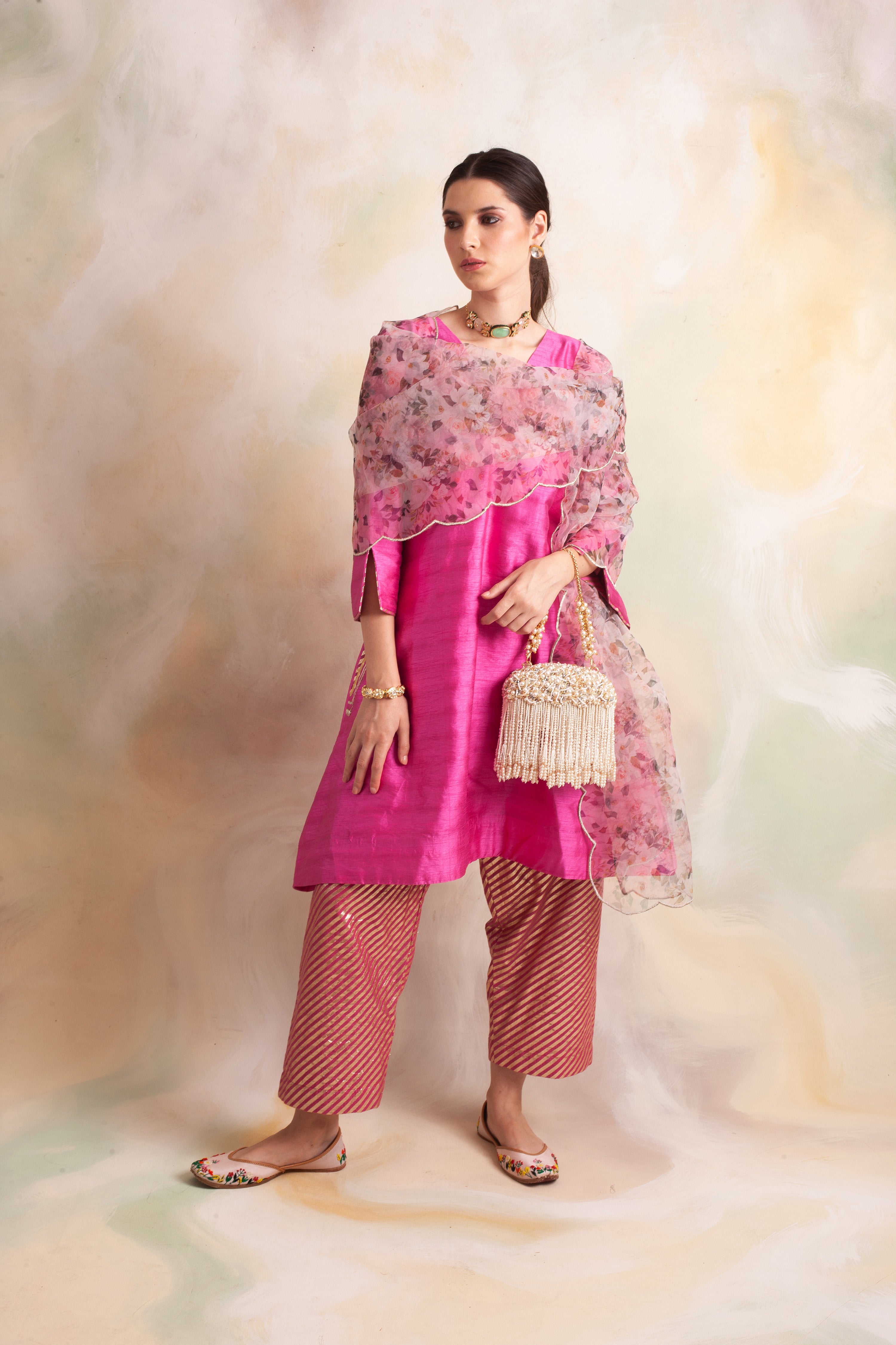 FUSCHIA PINK GAURI KURTA AND PANTS SET OF THREE