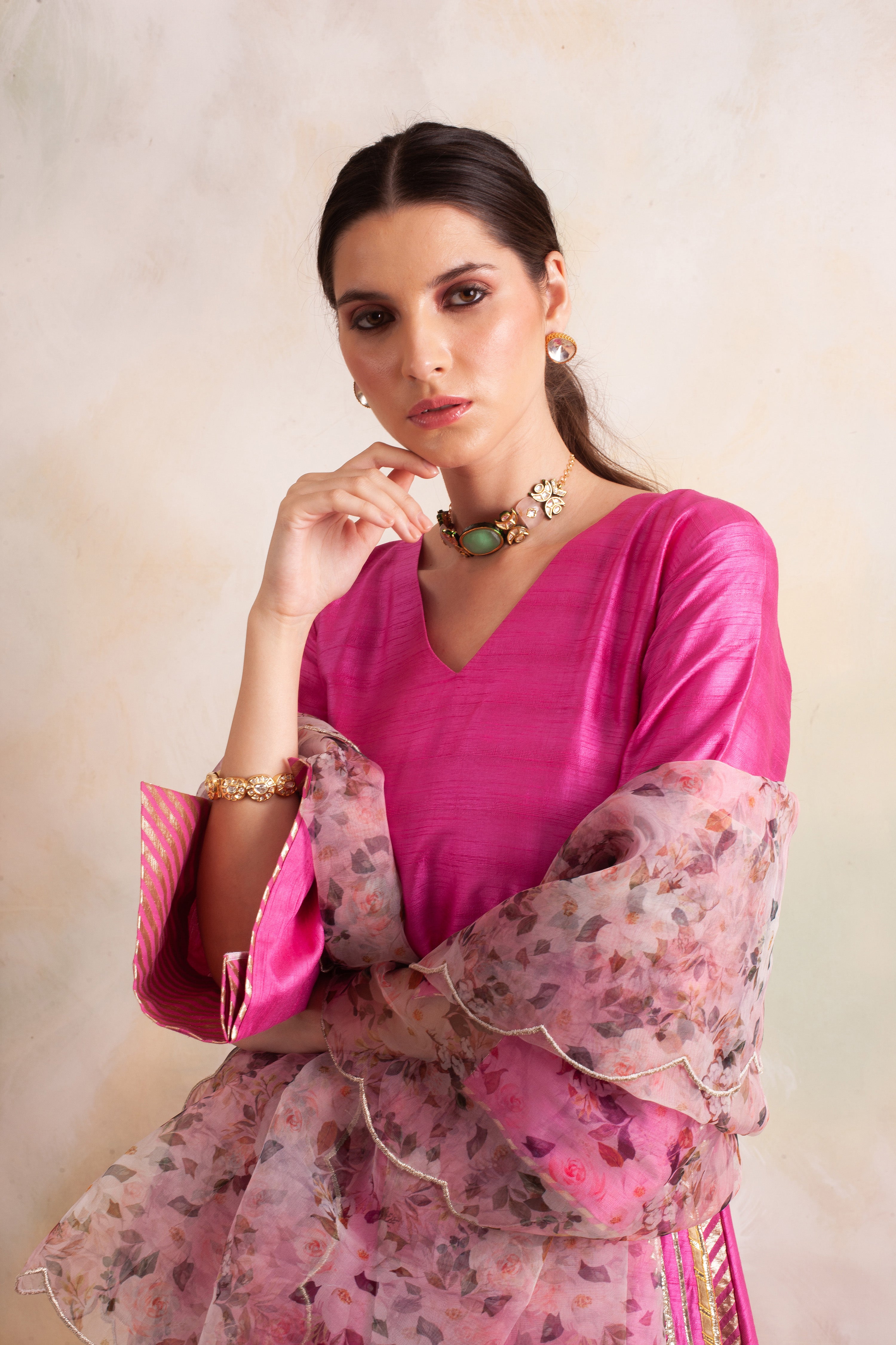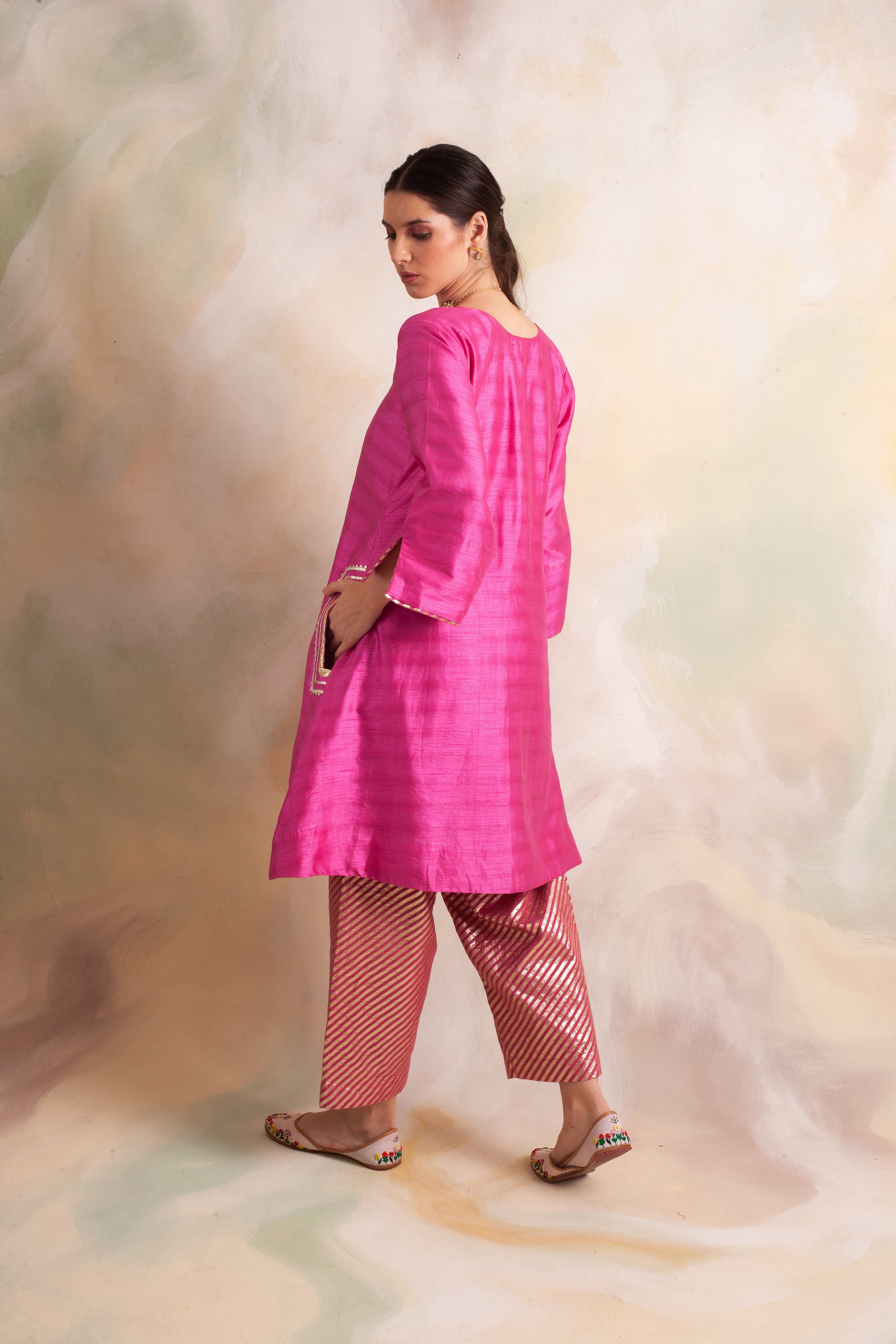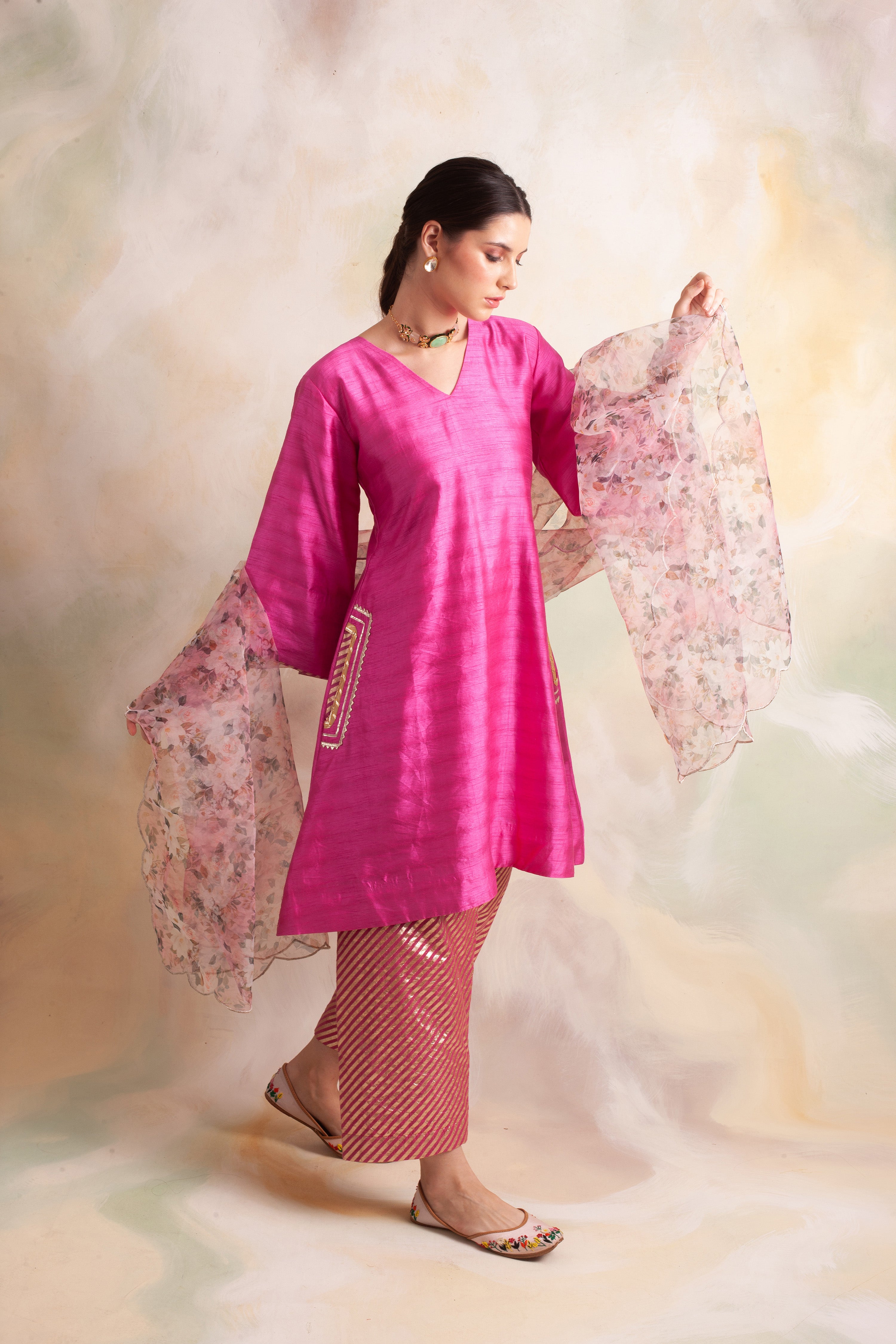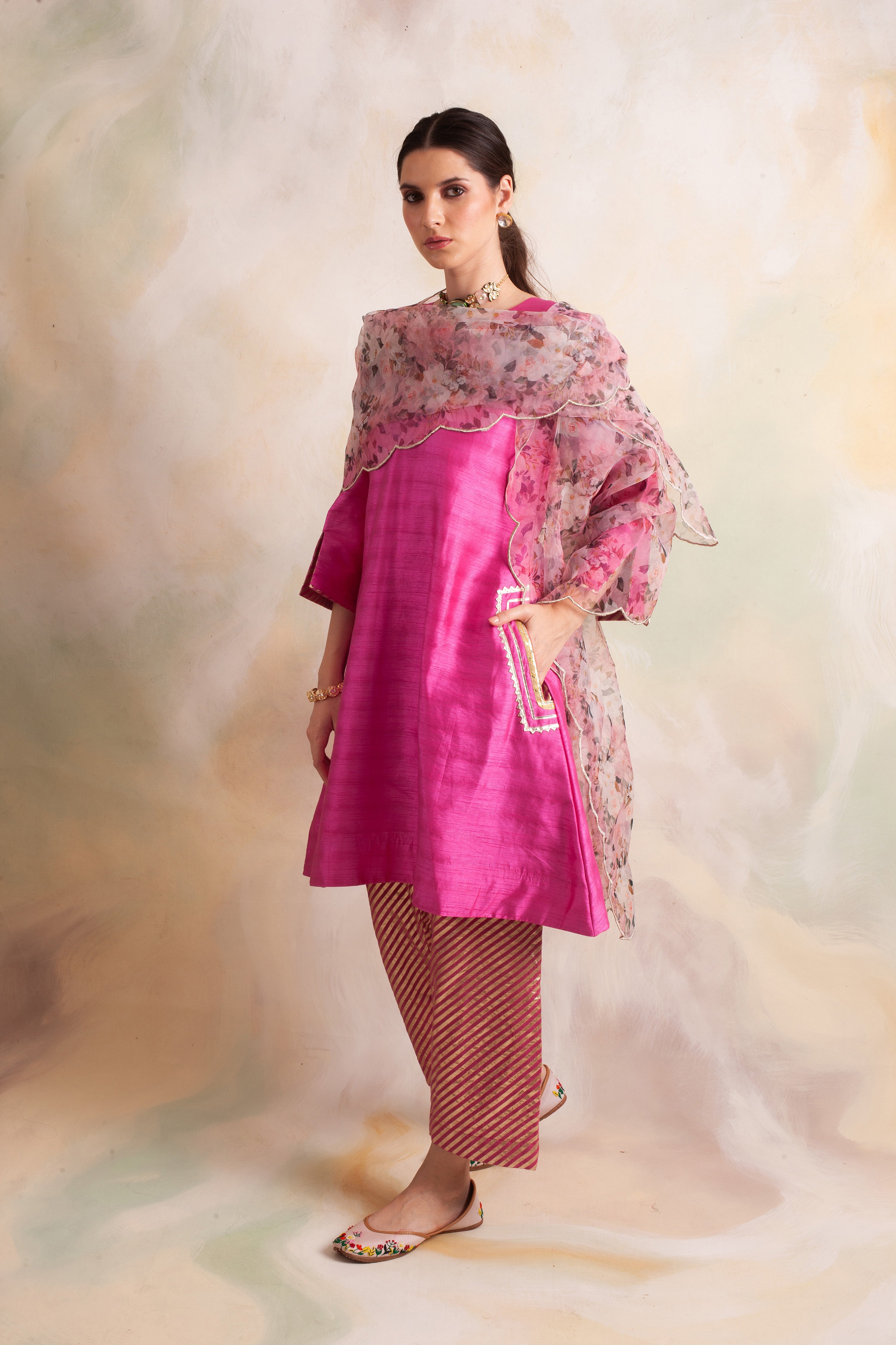 FUSCHIA PINK GAURI KURTA AND PANTS SET OF THREE