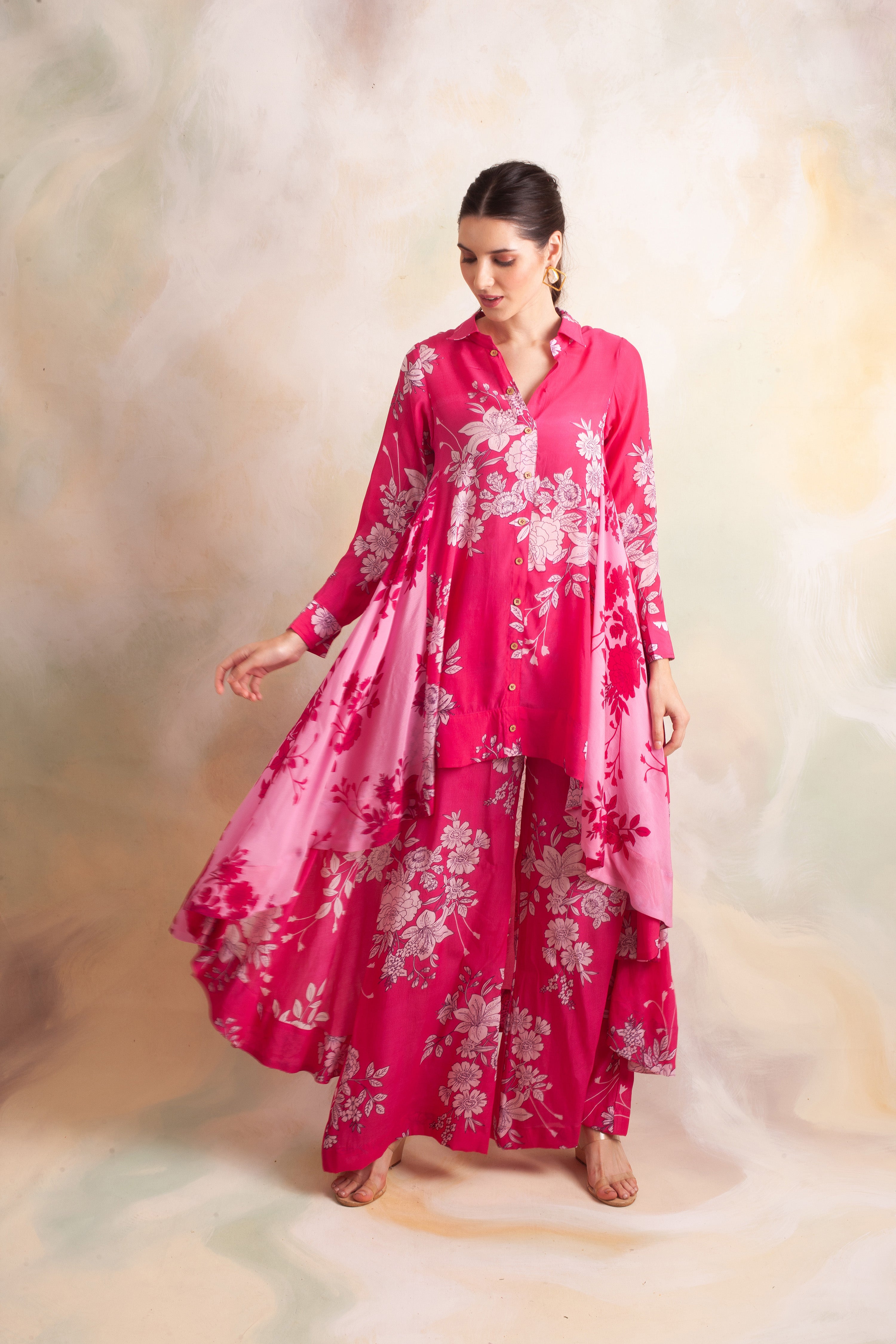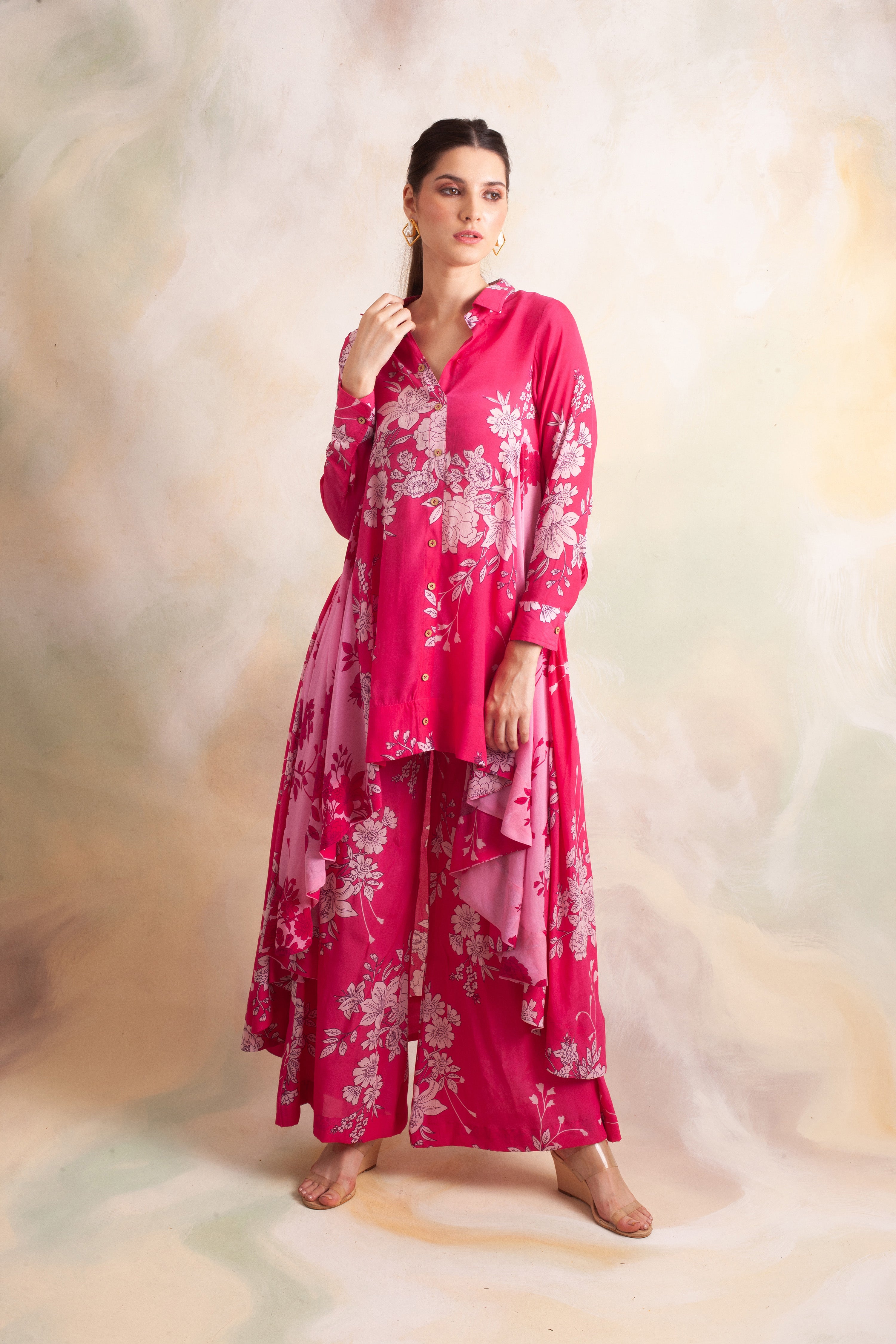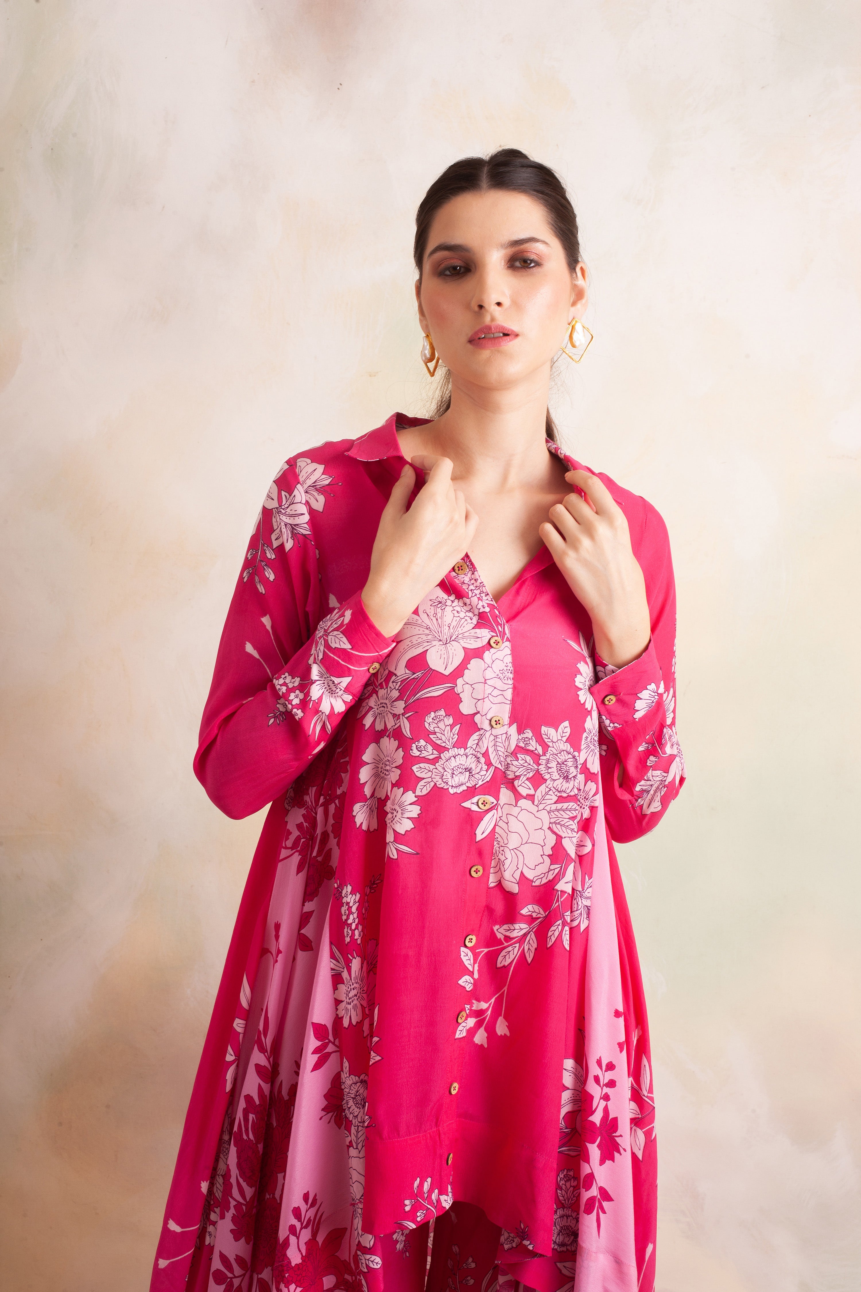 FUCSHIA PINK FLORAL RIA SHIRT & PANTS COORD SET