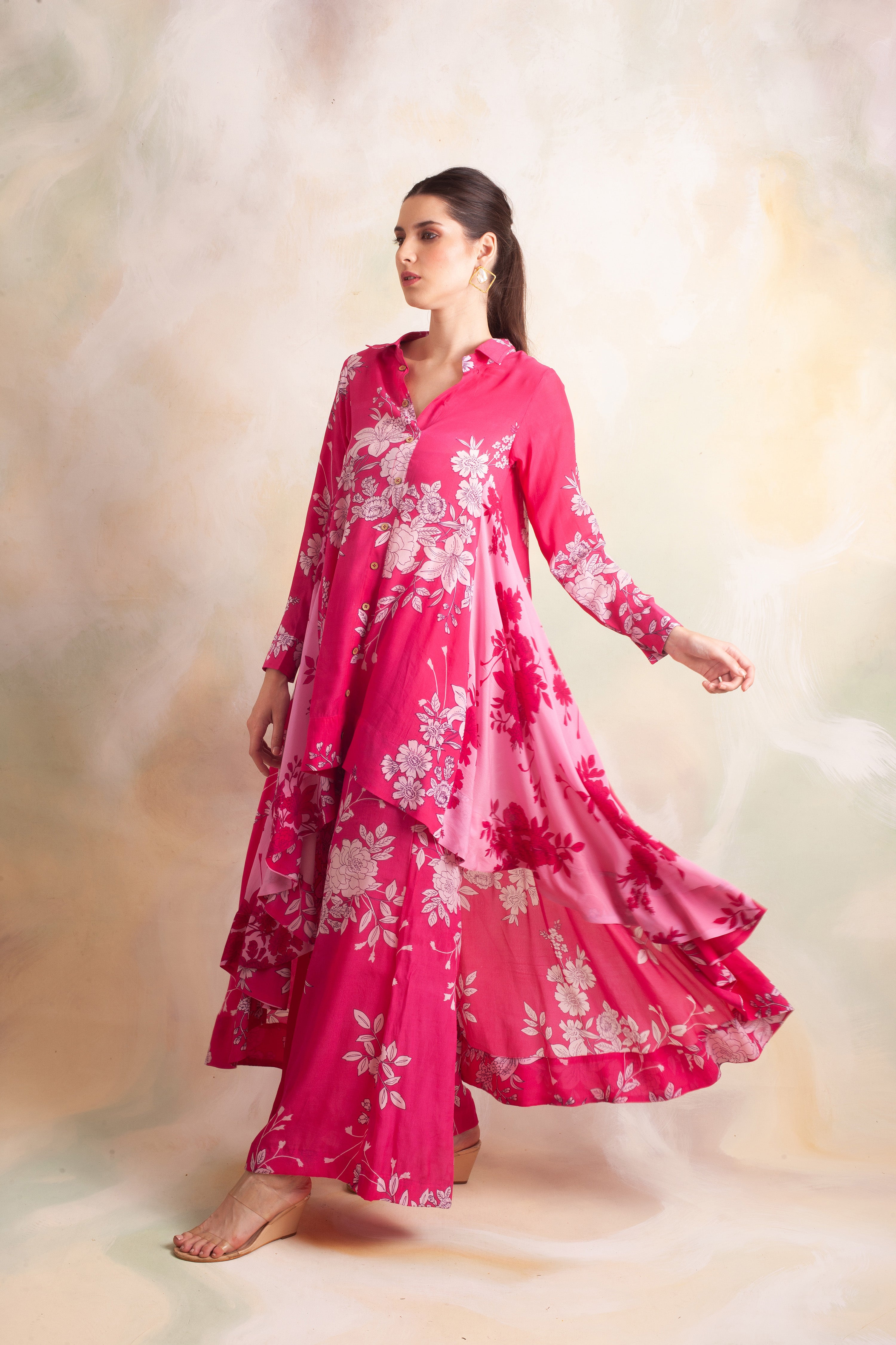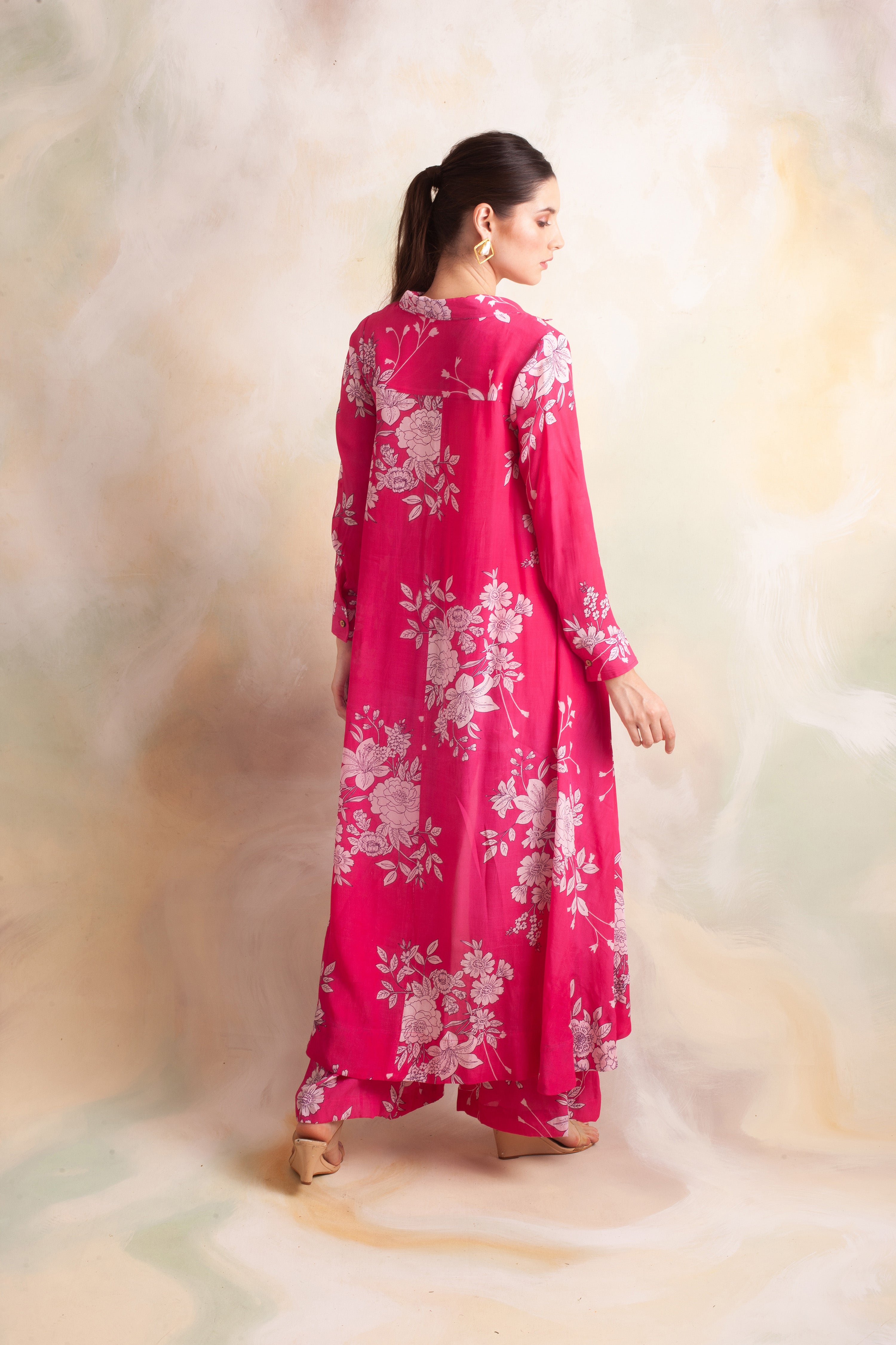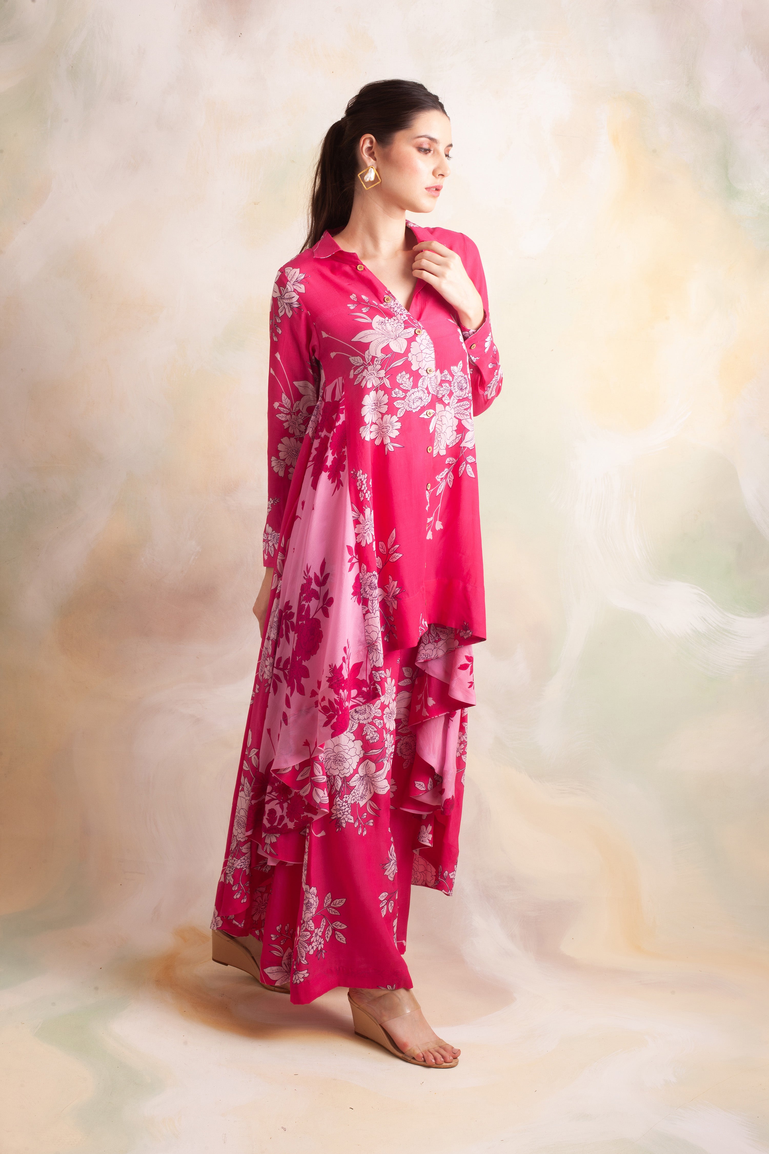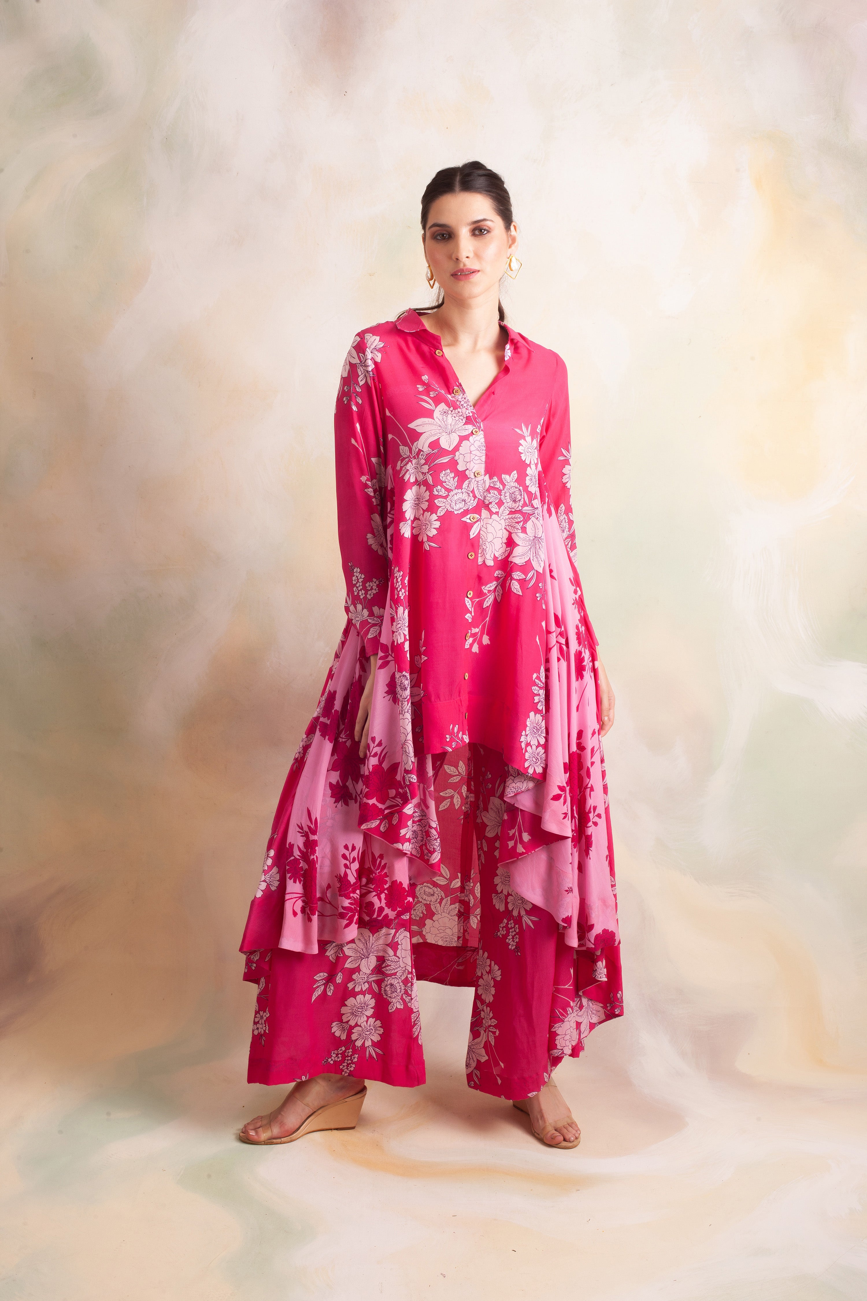 FUCSHIA PINK FLORAL RIA SHIRT & PANTS COORD SET