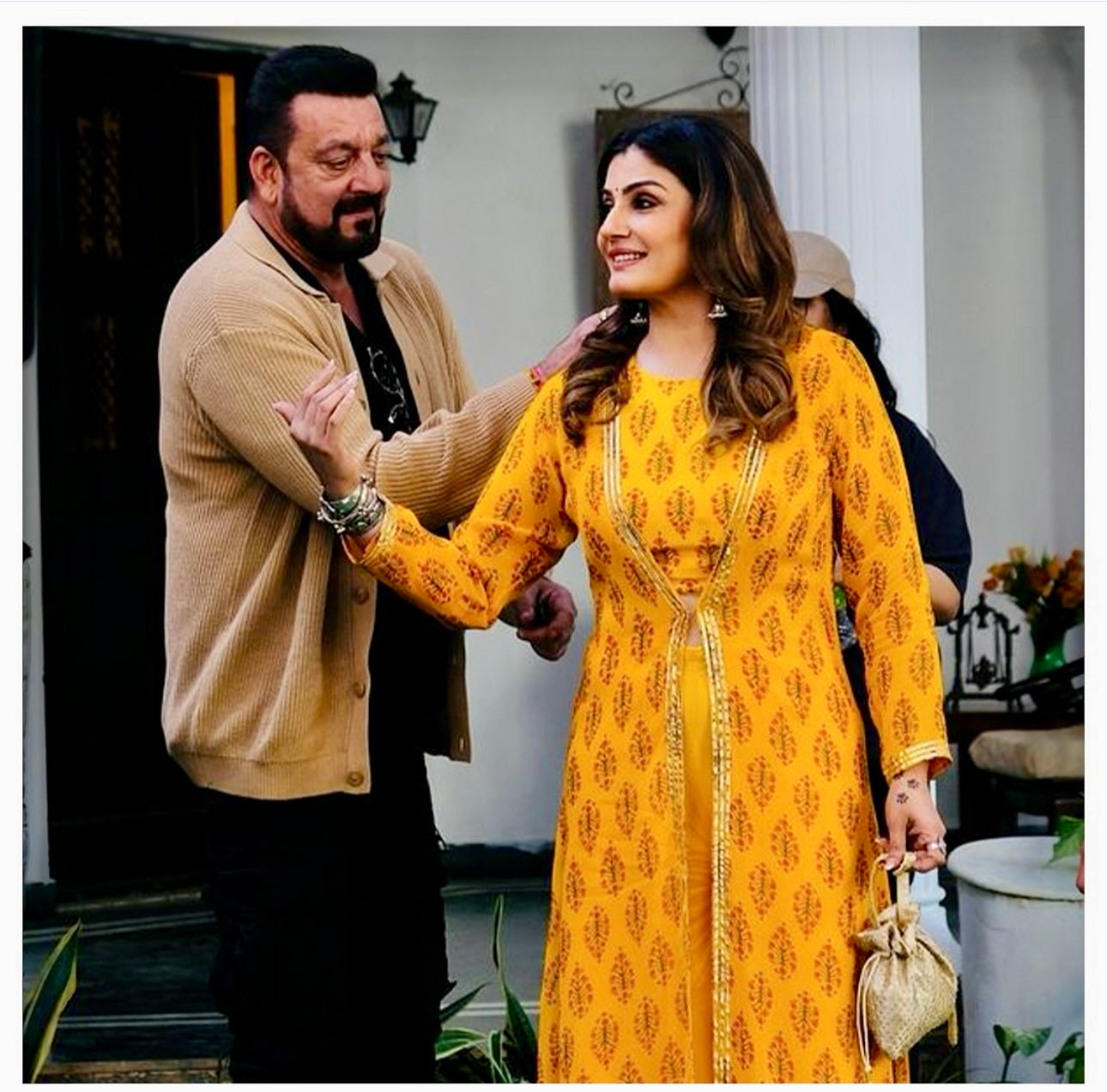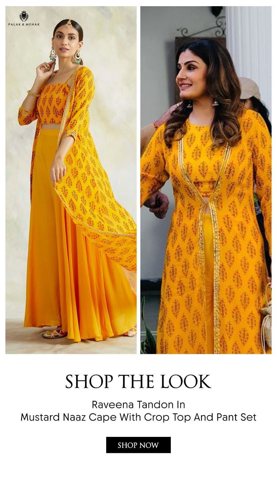 RAVEENA TANDON | MUSTARD NAAZ CAPE WITH CROP TOP AND PANT SET OF THREE