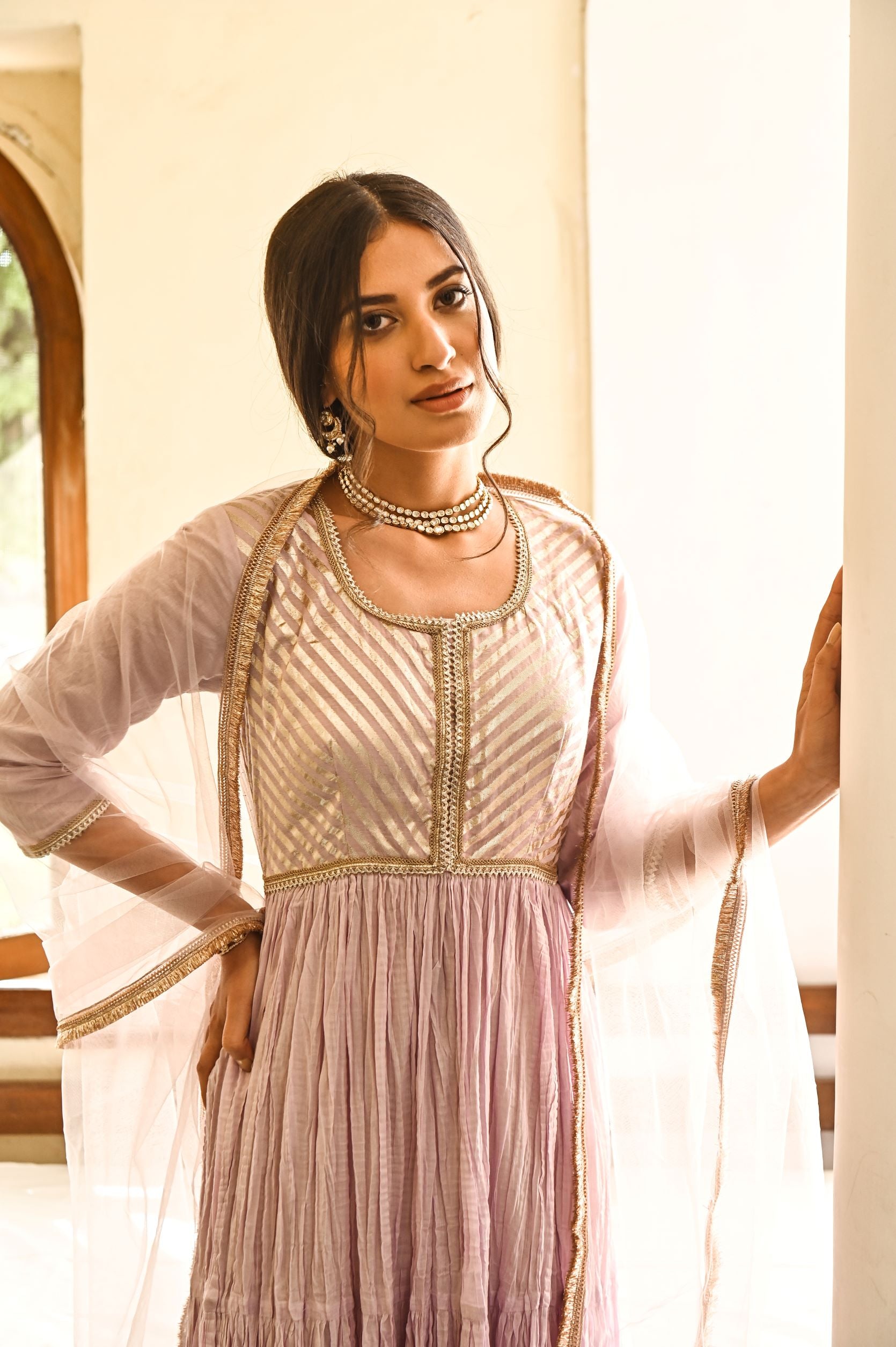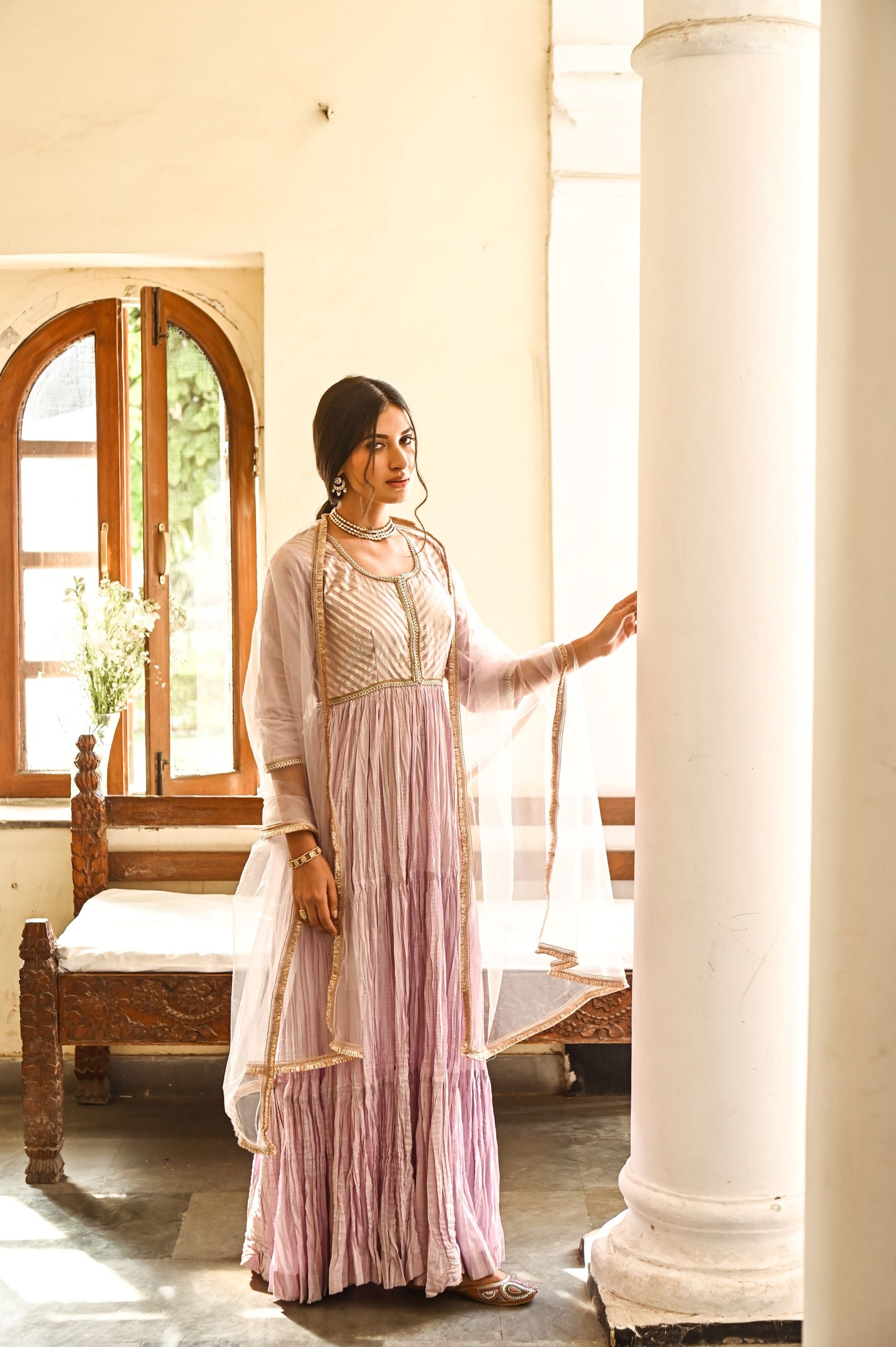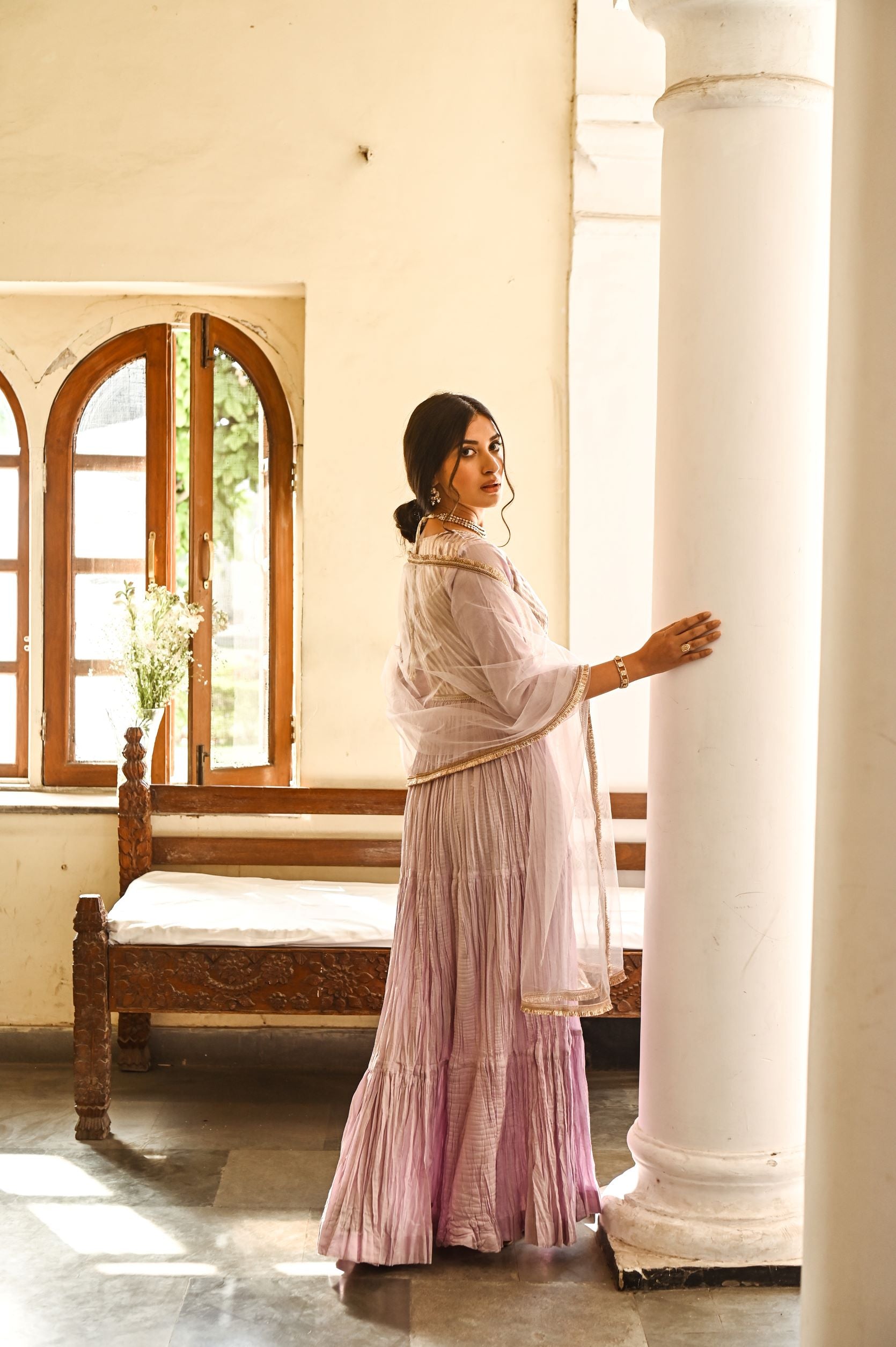 LILAC KAYA MULMUL KURTA AND ODHANI SET OF TWO