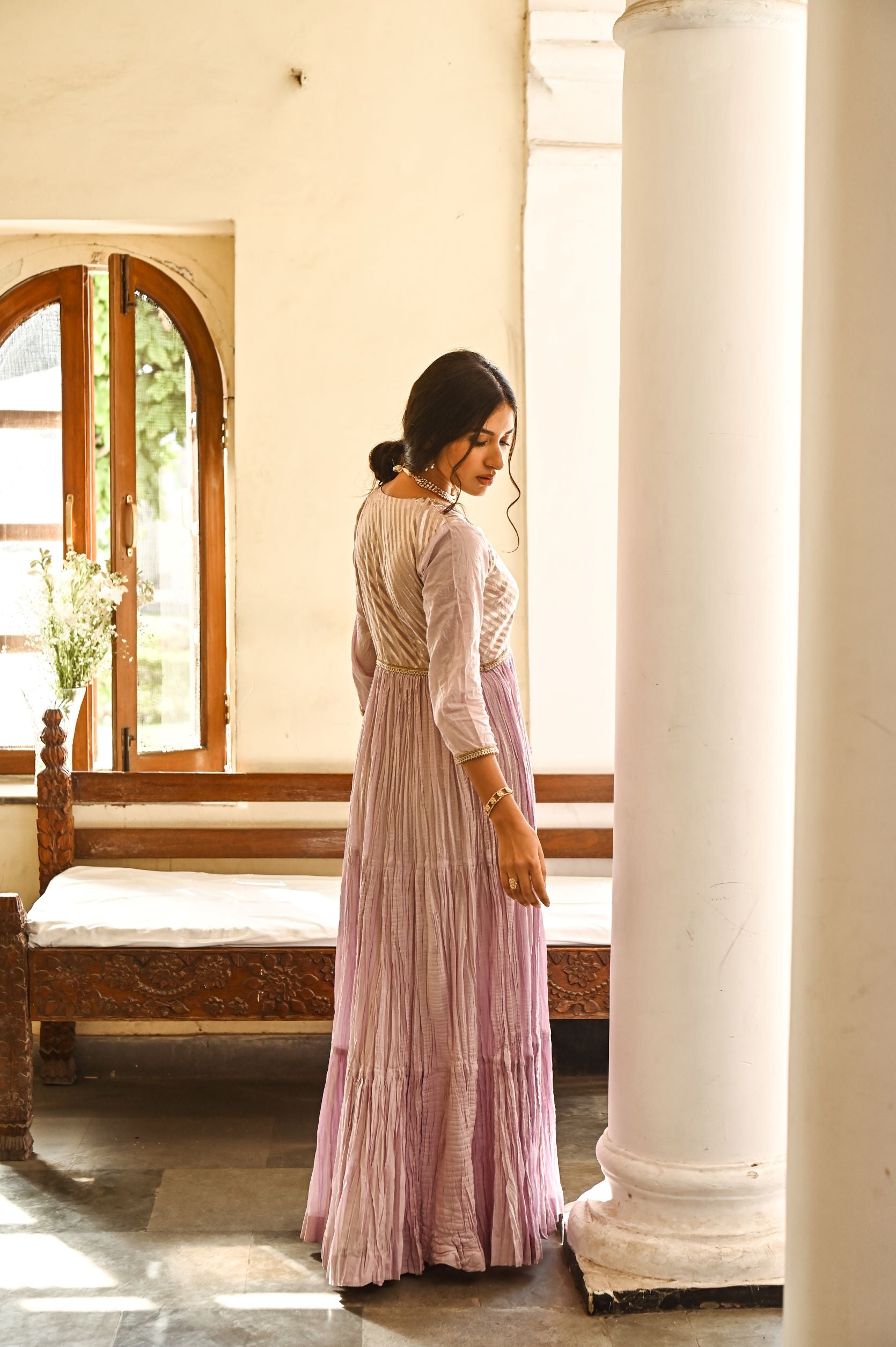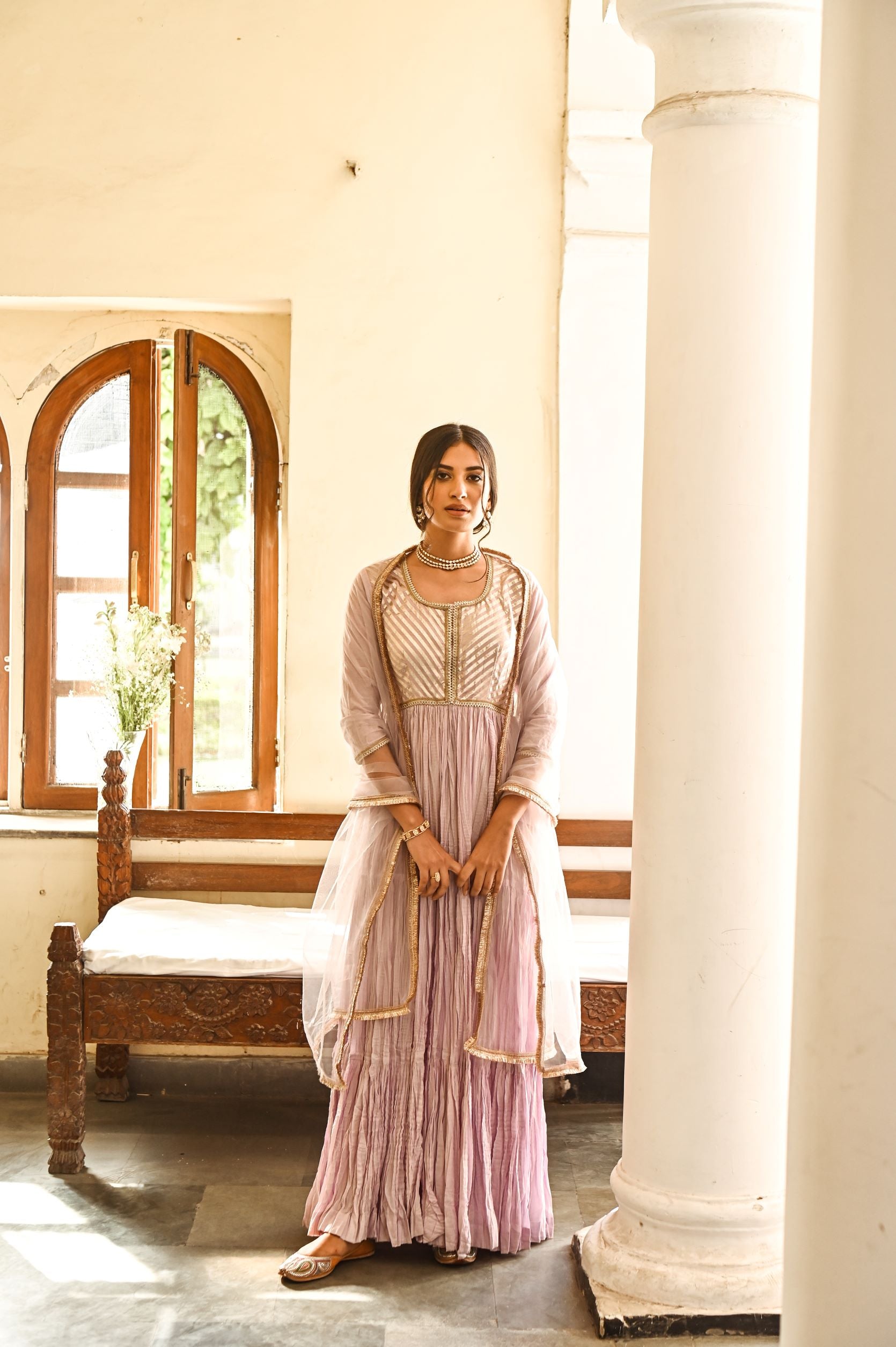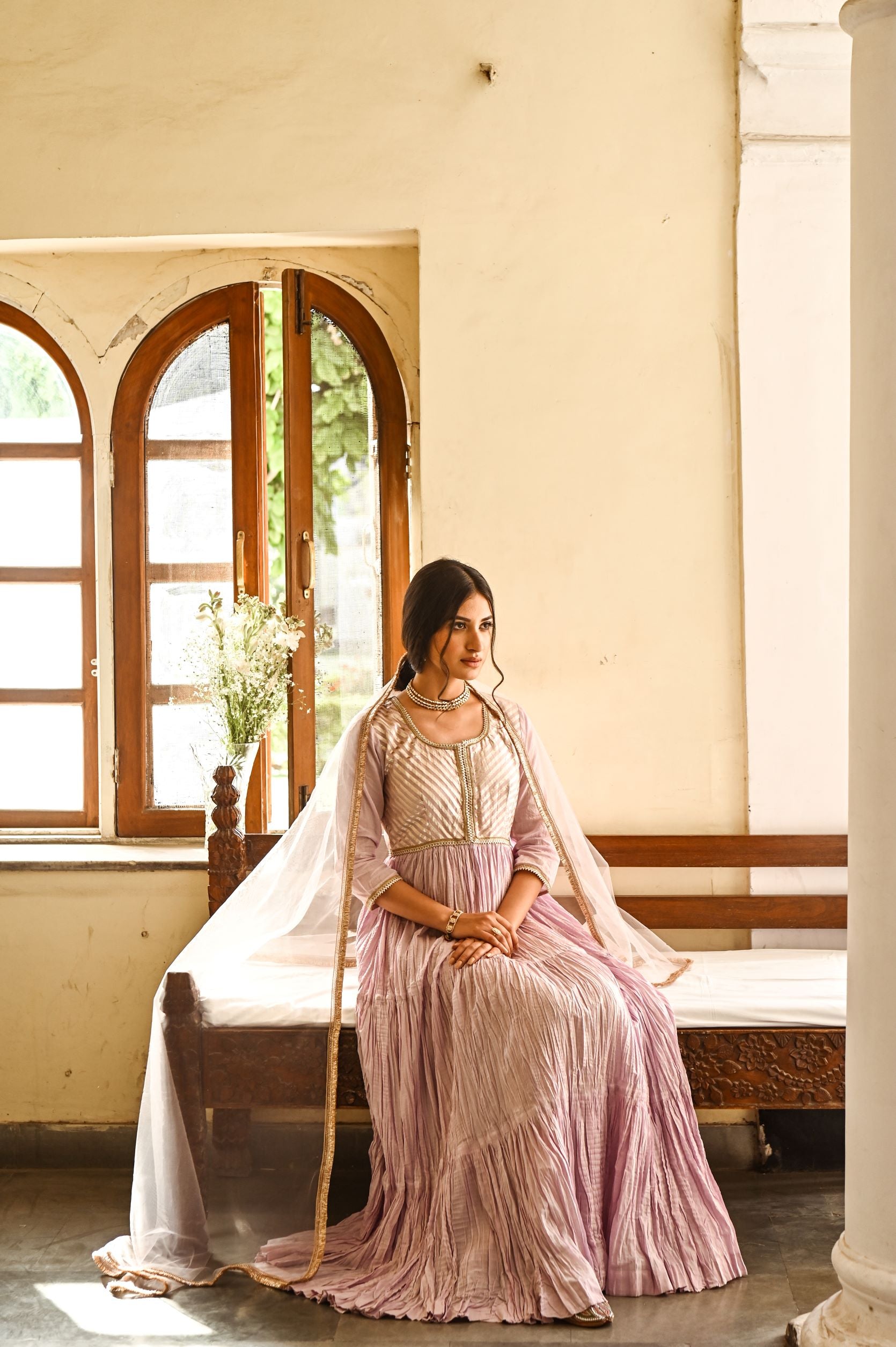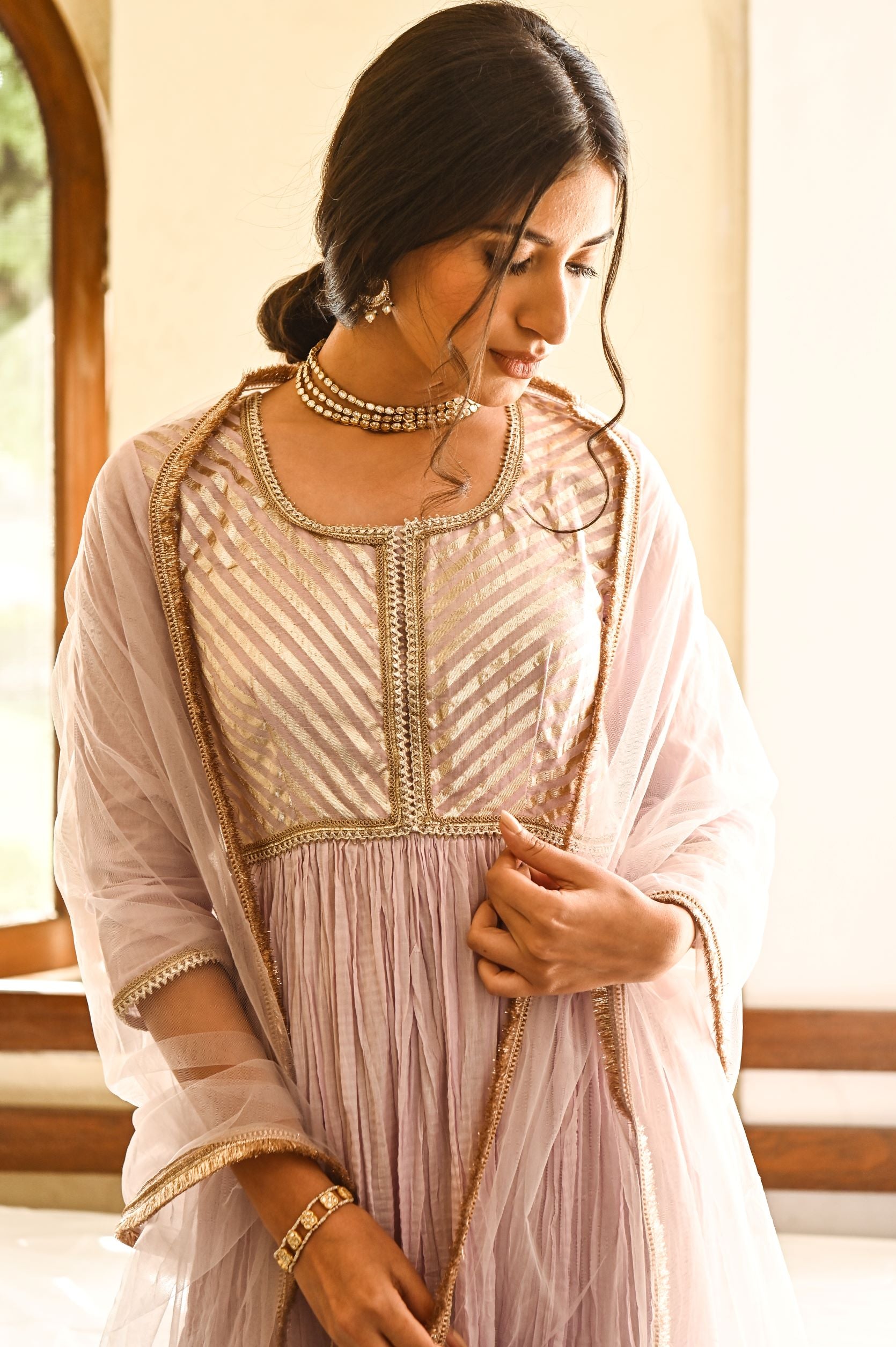 LILAC KAYA MULMUL KURTA AND ODHANI SET OF TWO