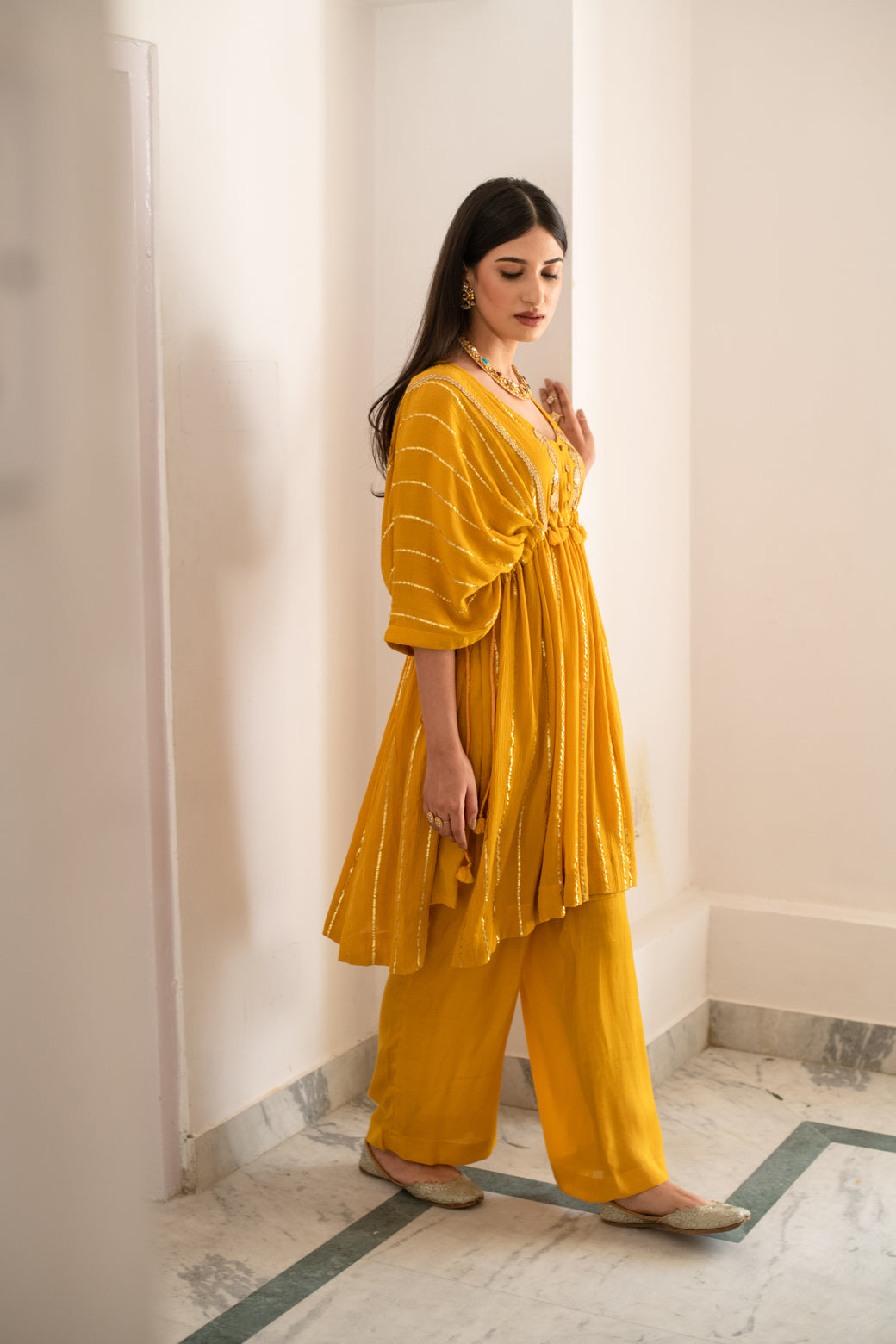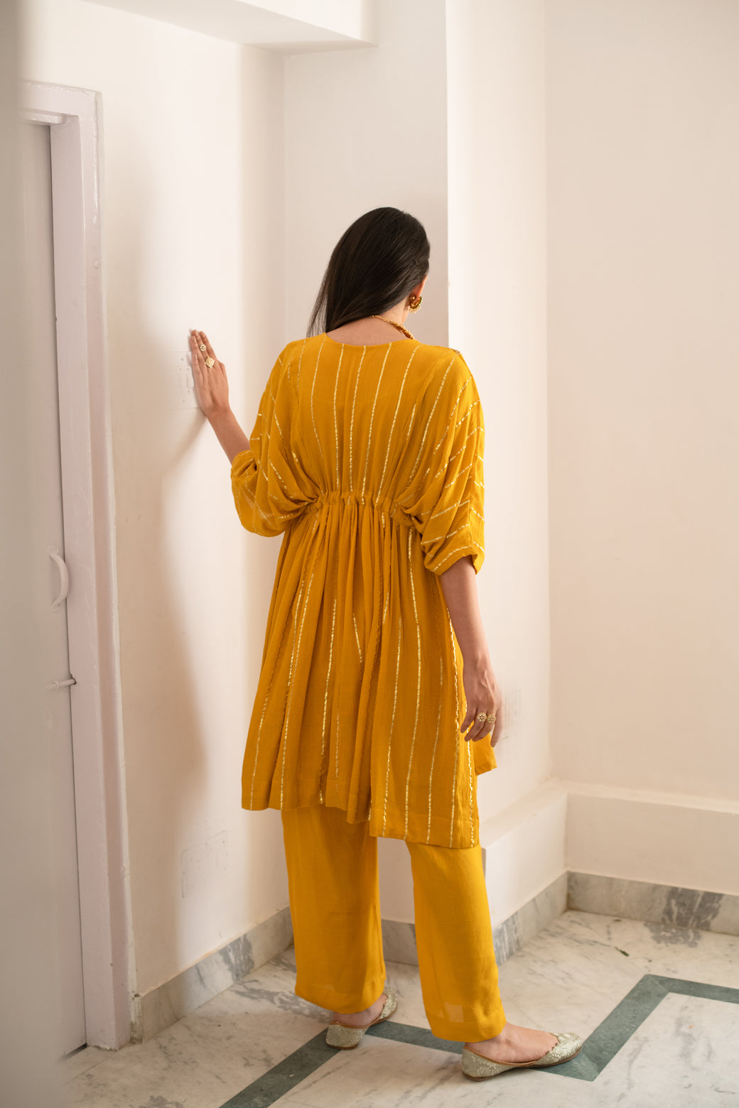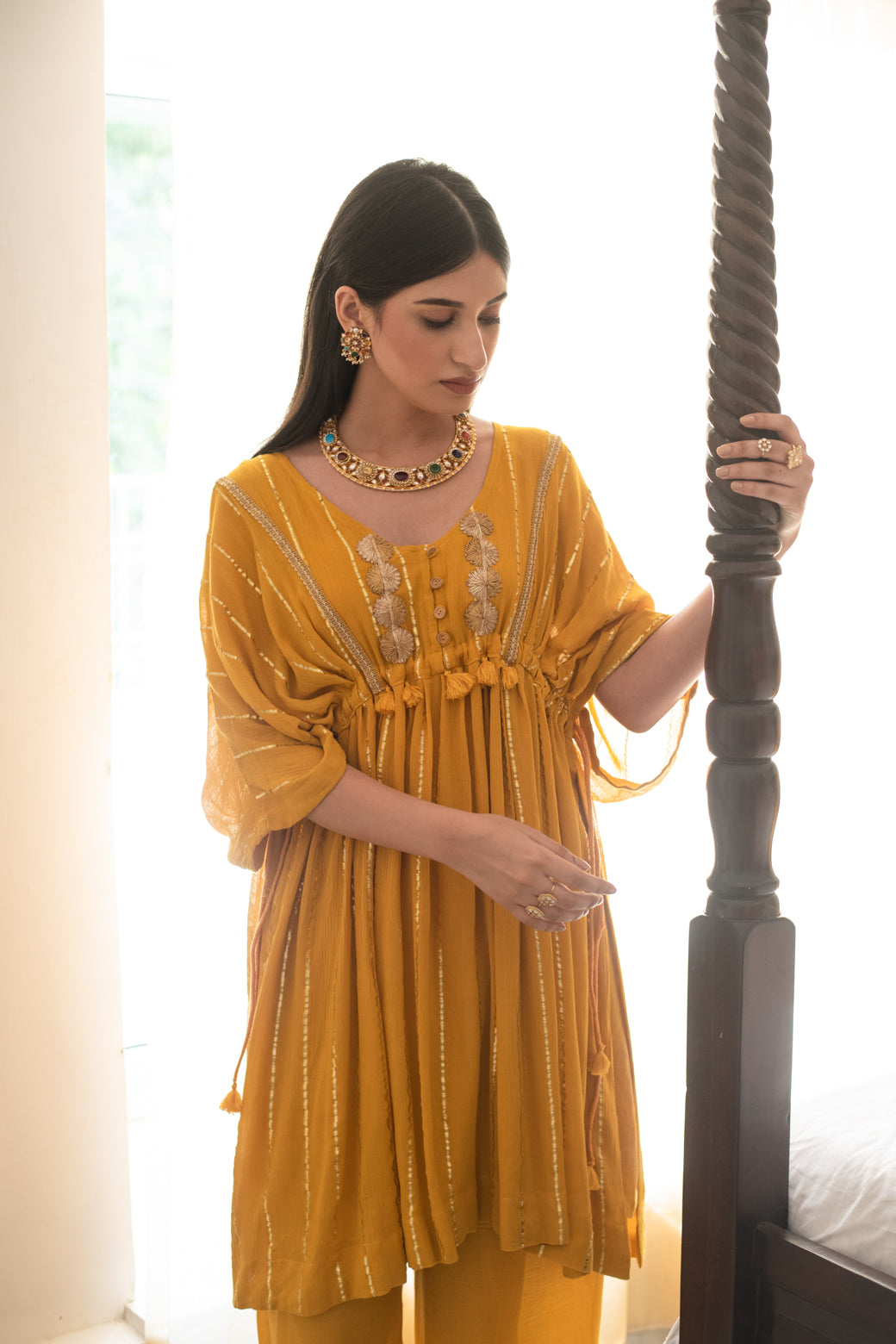 SHARNAMLI MEHRA | MUSTARD KUHU KAFTAN WITH PANTS - SET OF TWO