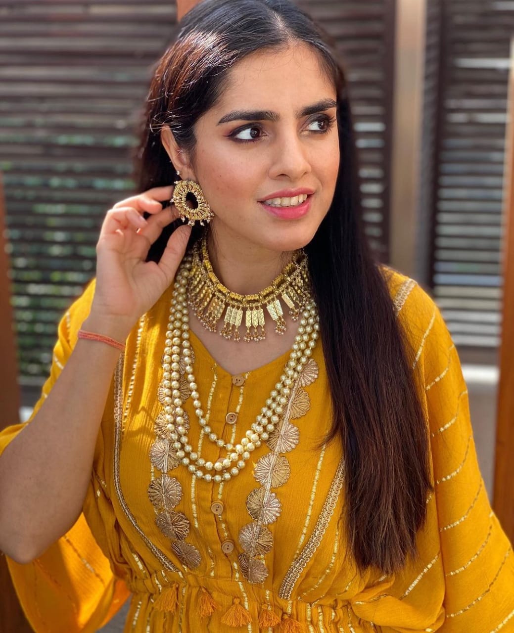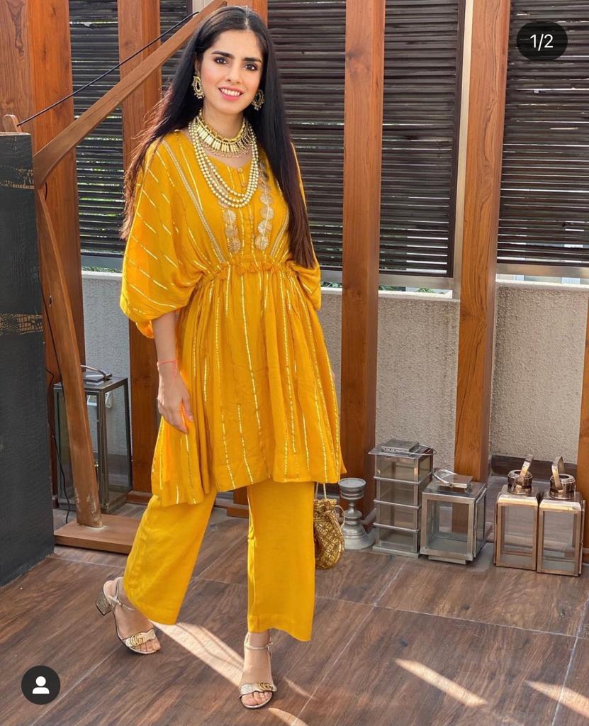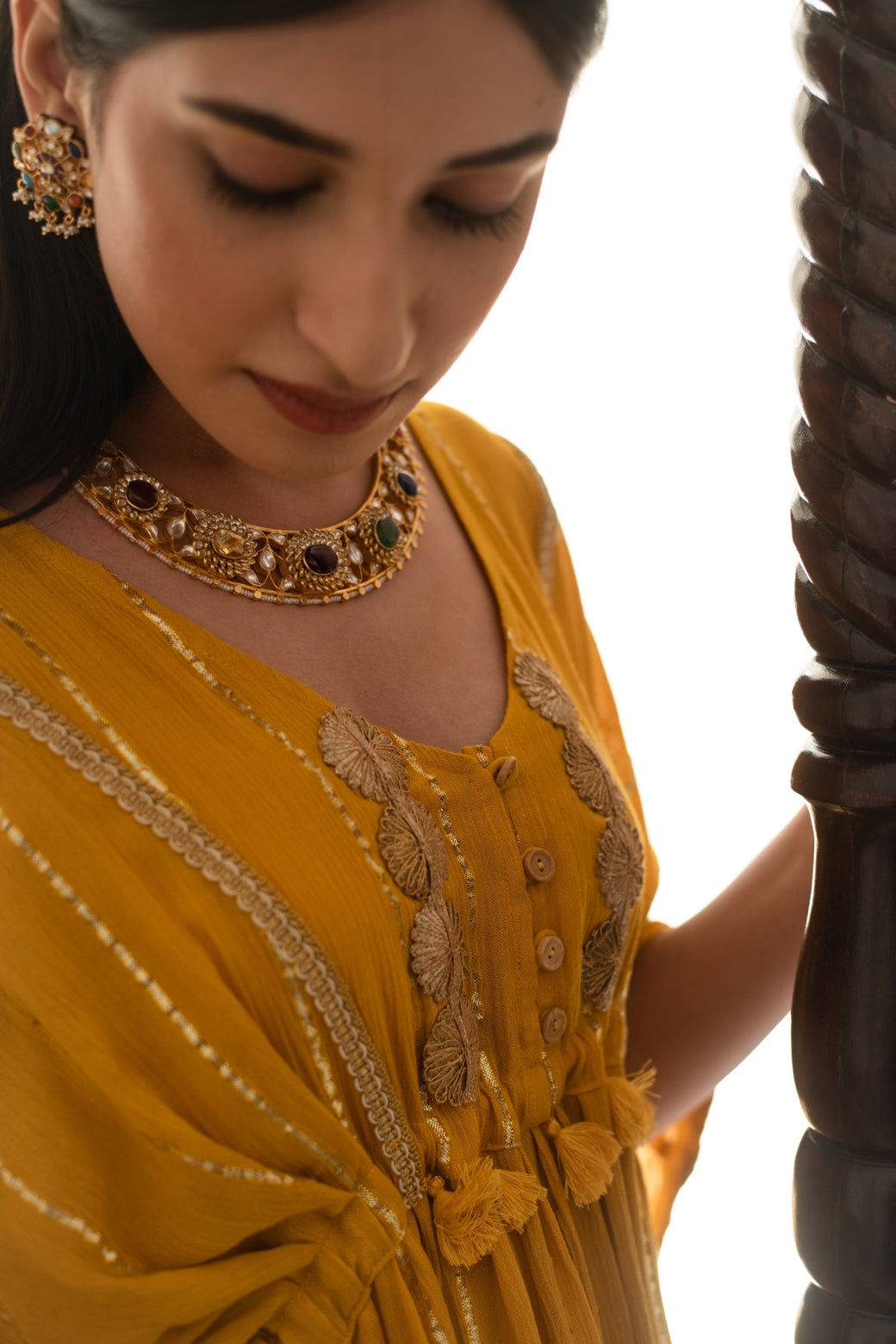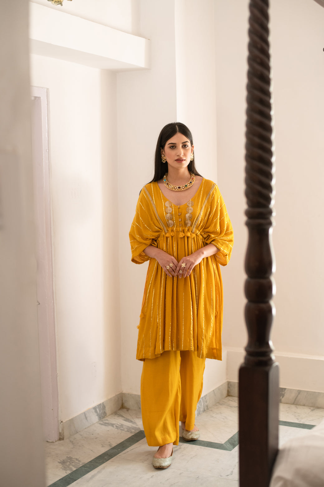 SHARNAMLI MEHRA | MUSTARD KUHU KAFTAN WITH PANTS - SET OF TWO