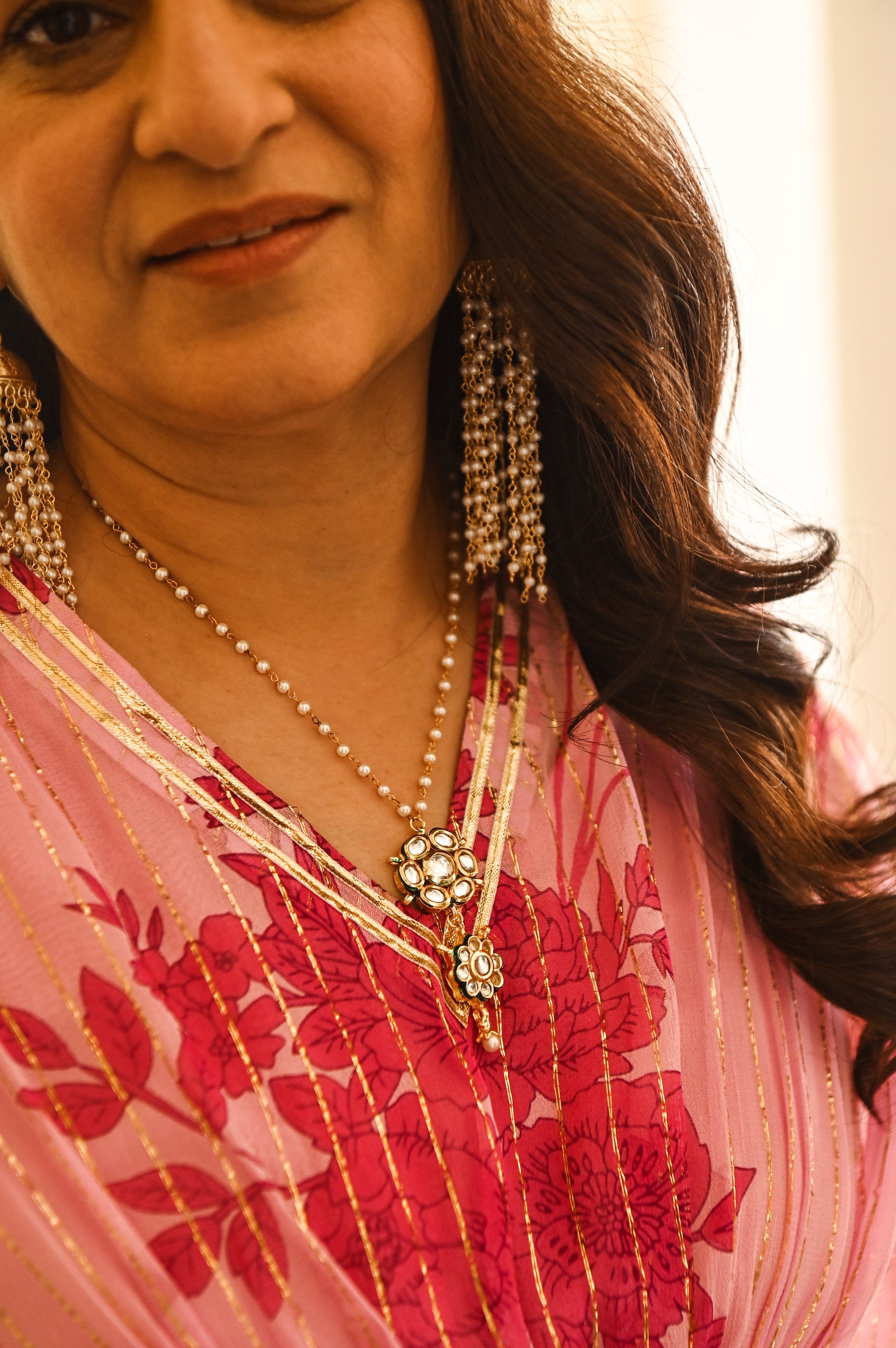 This vivid printed Kaftan Dress is a sure shot head turner this festive season. Made with exquisite gold weaving georgette fabric, its lined with a cotton slip. Style it with polki jewelry and mojaris for a Mehndi celebration. Or wear it with statement gold hoops and gladiators for a beach soiree. A must have piece in your wardrobe. It come with a soft cotton slip.