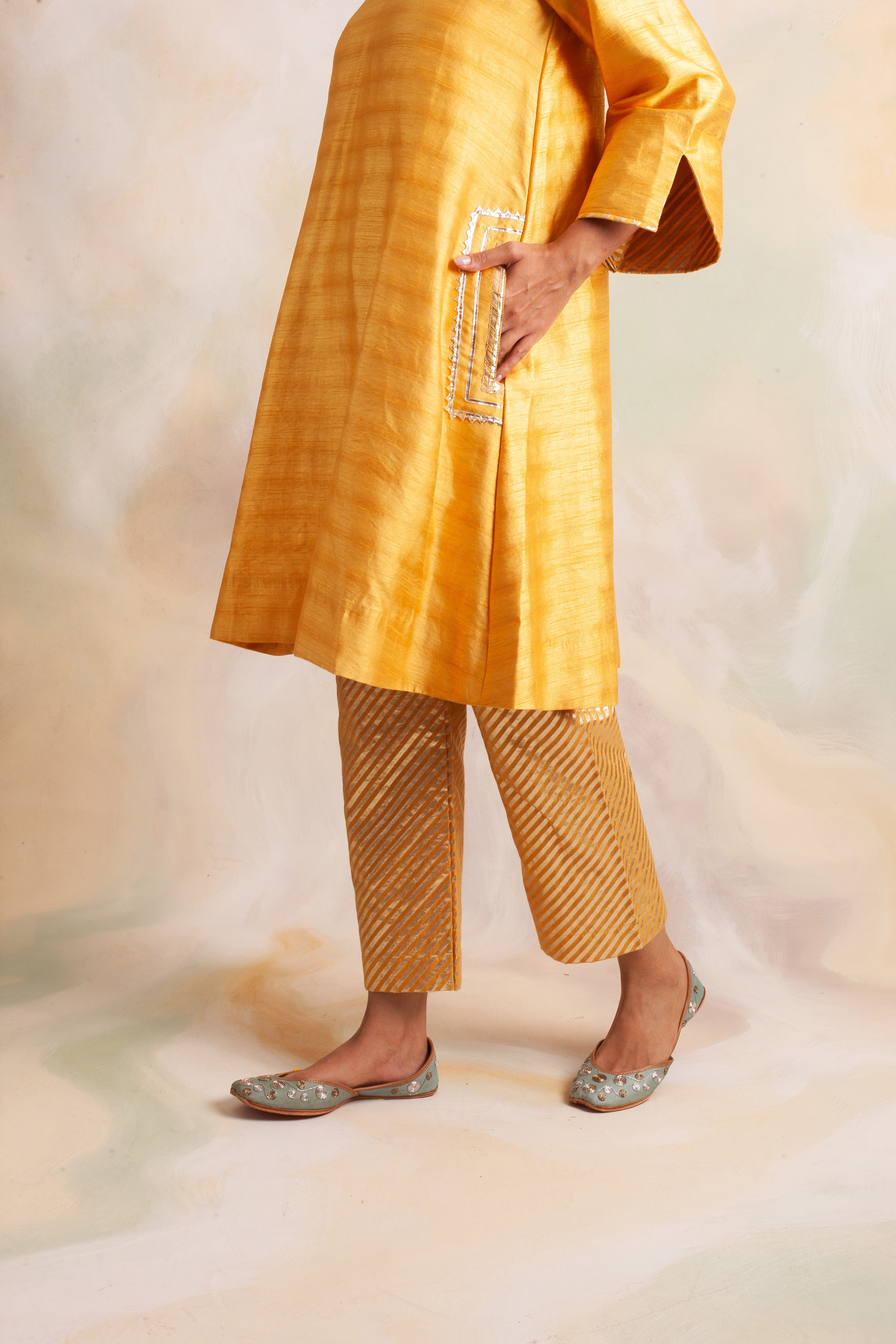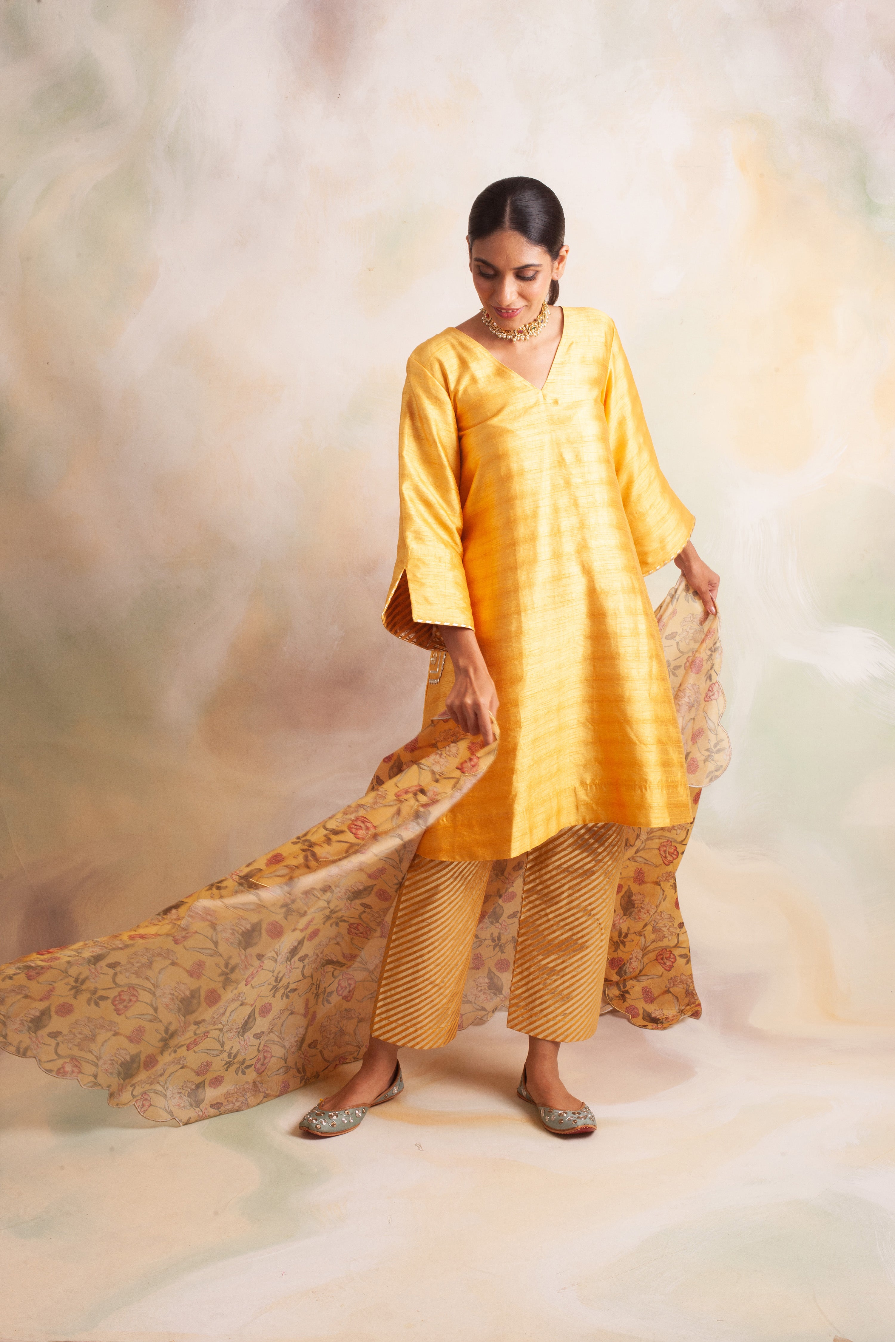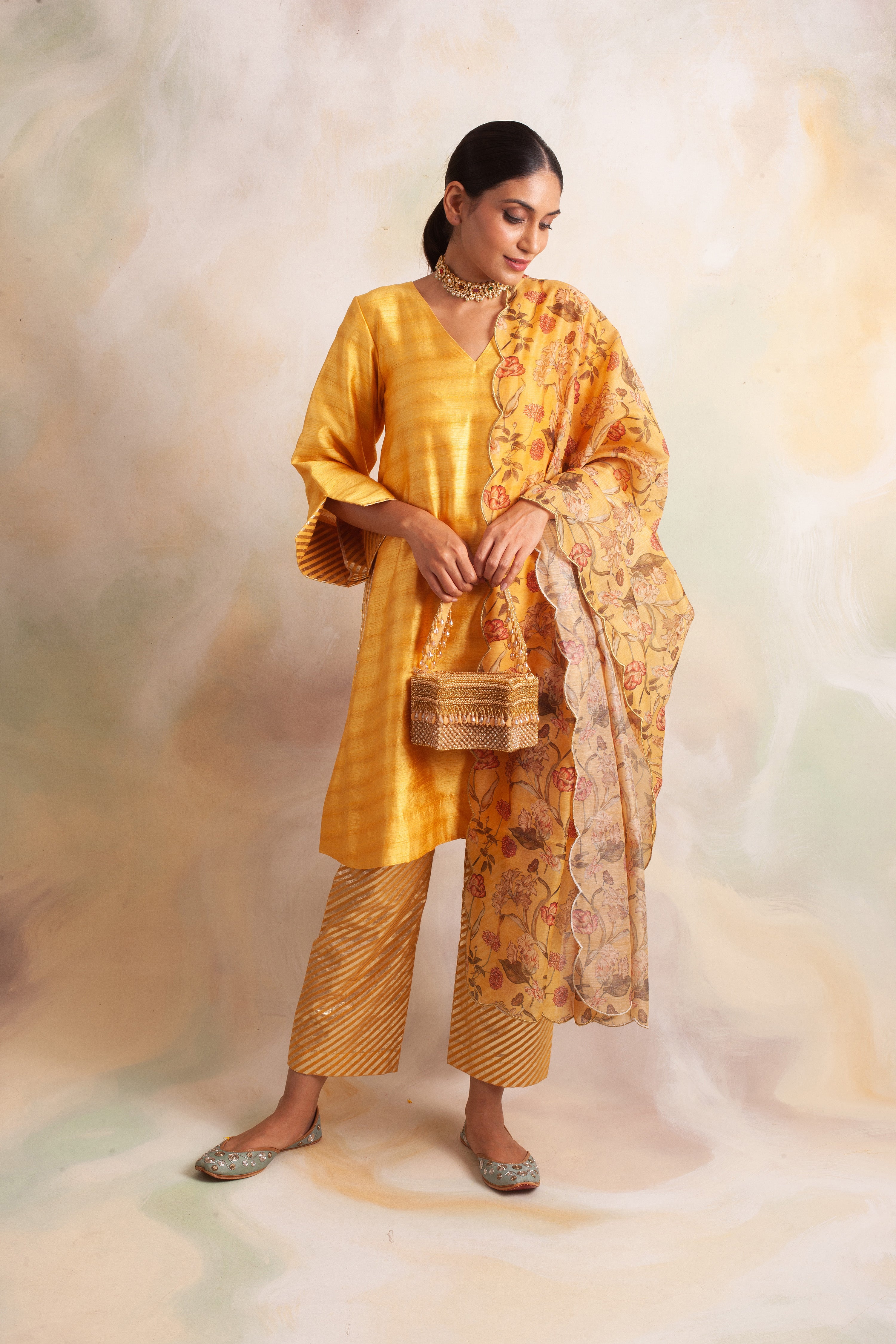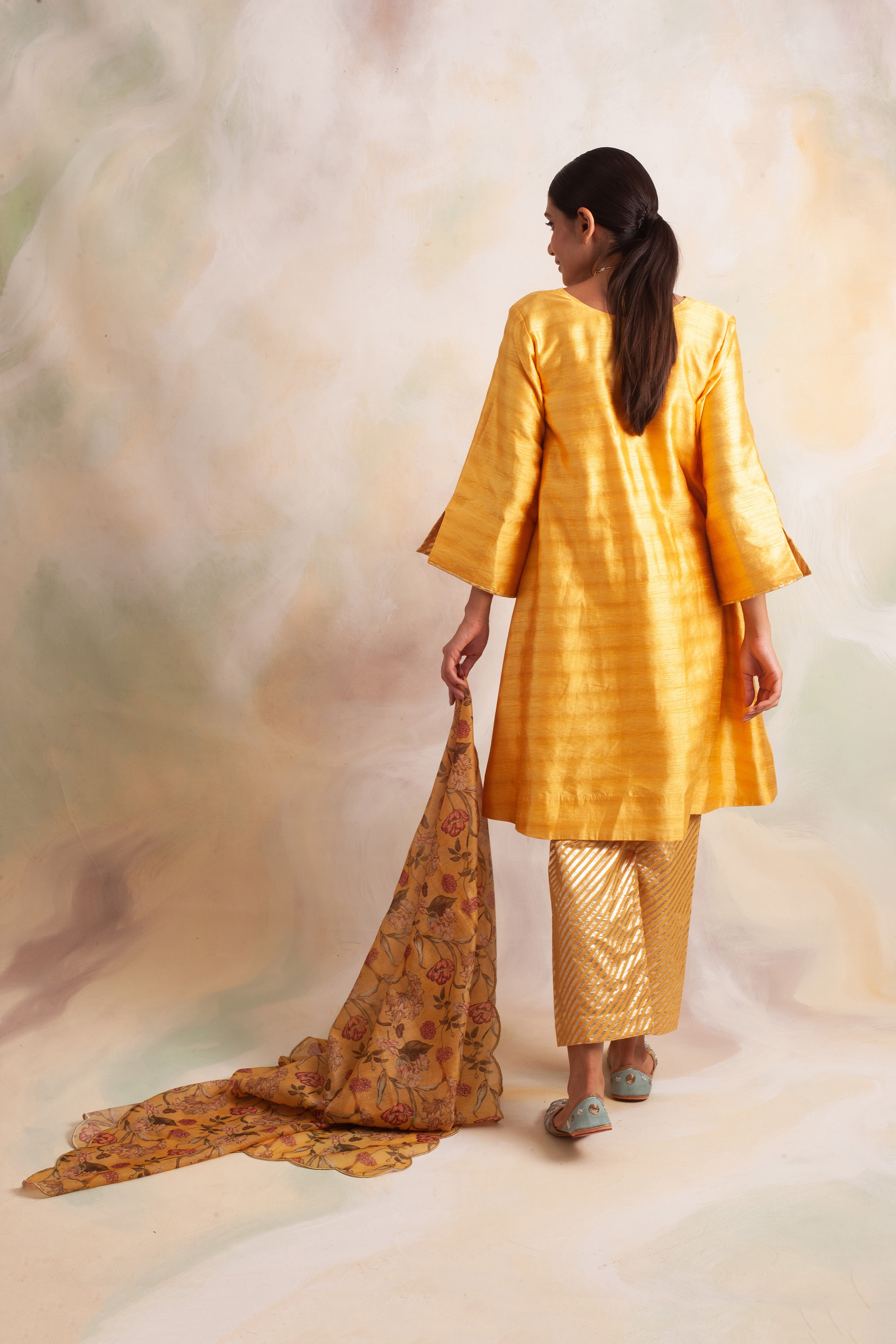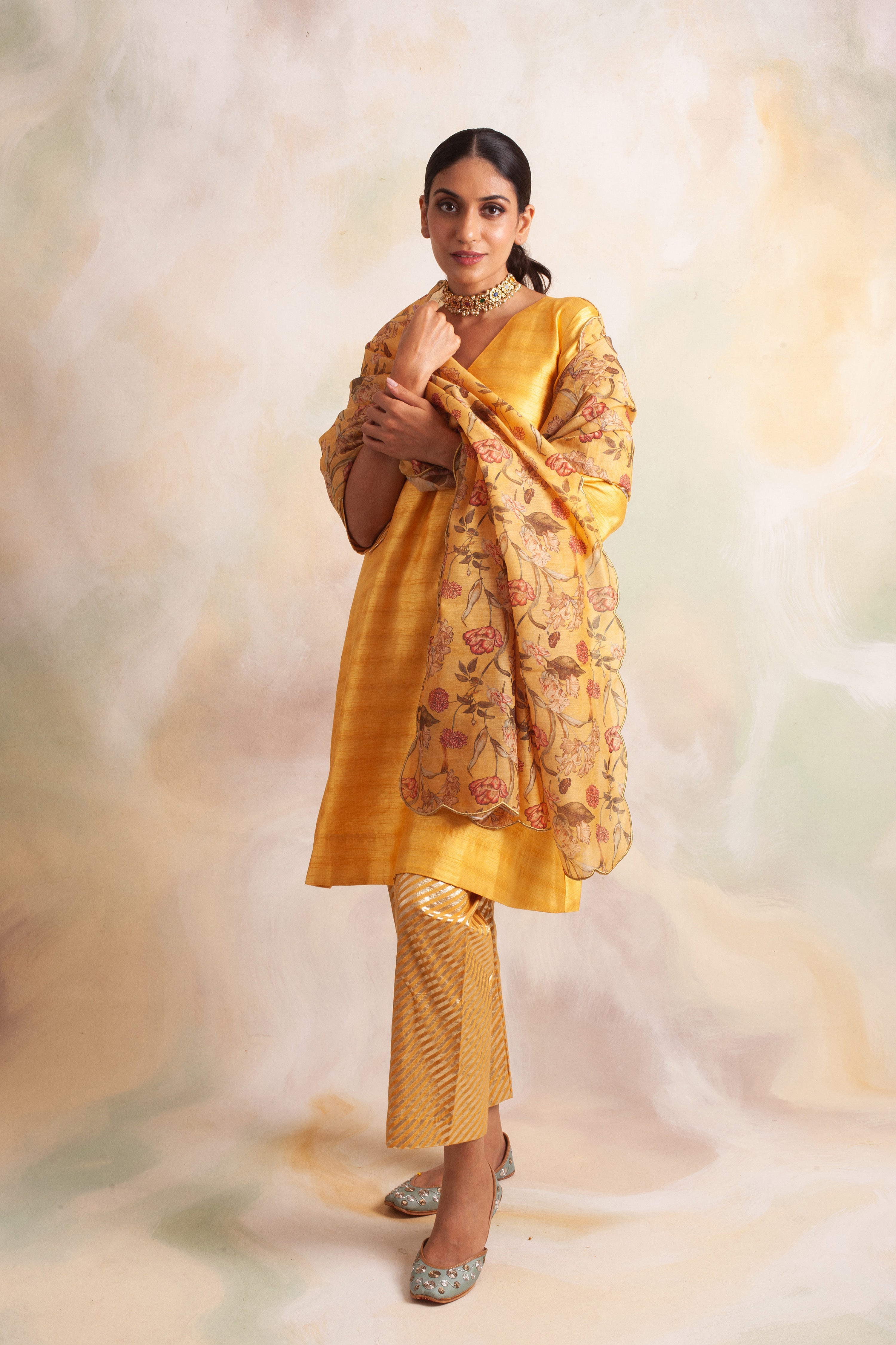 MUSTARD GAURI KURTA WITH PANTS AND ODHANI SET OF THREE