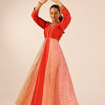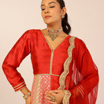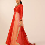MYRA RED ANARKALI, TROUSERS & ODHANI SET OF THREE