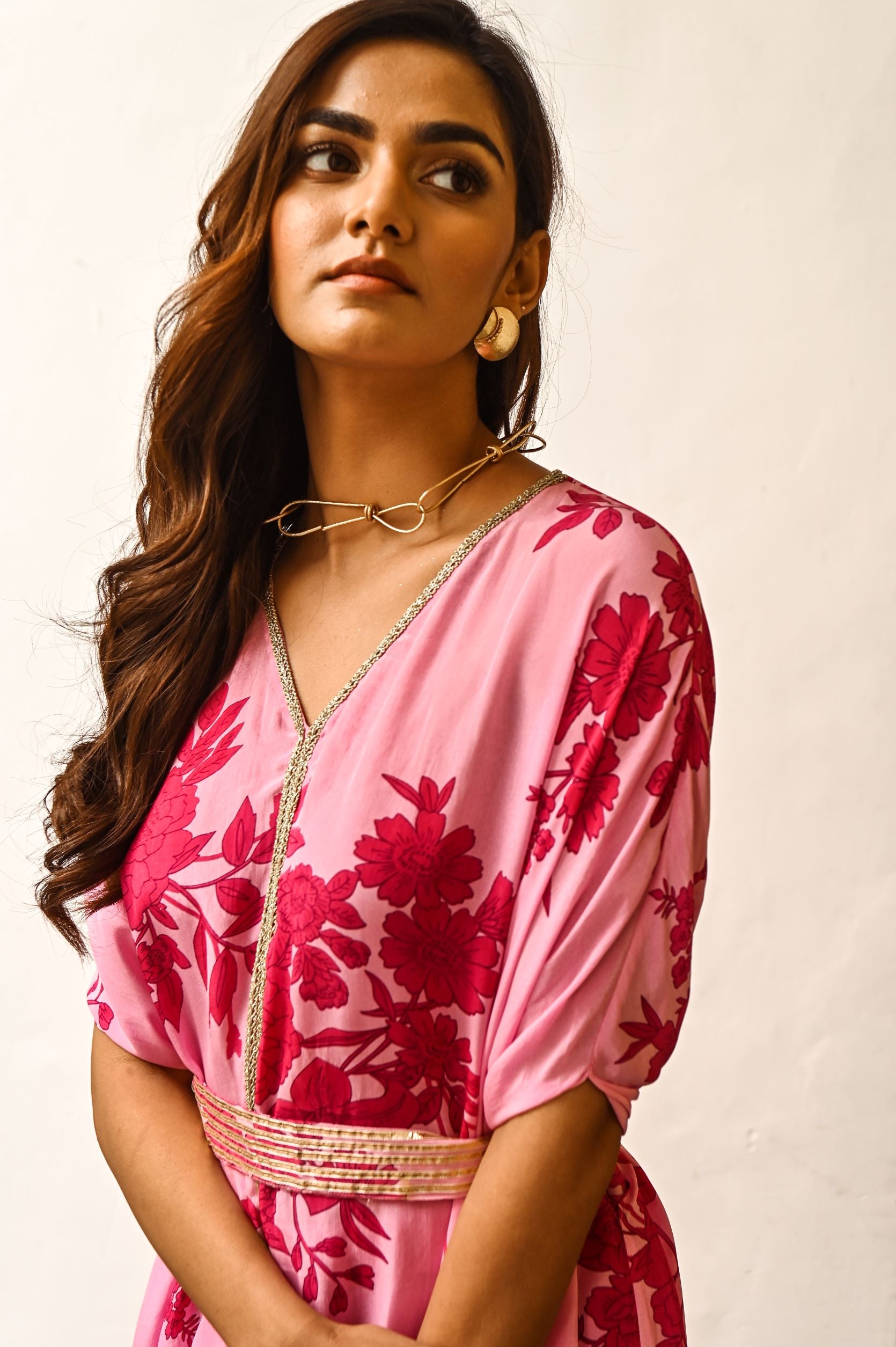 PINK ZEENAT KAFTAN TOP, BELT & TROUSERS SET OF 3